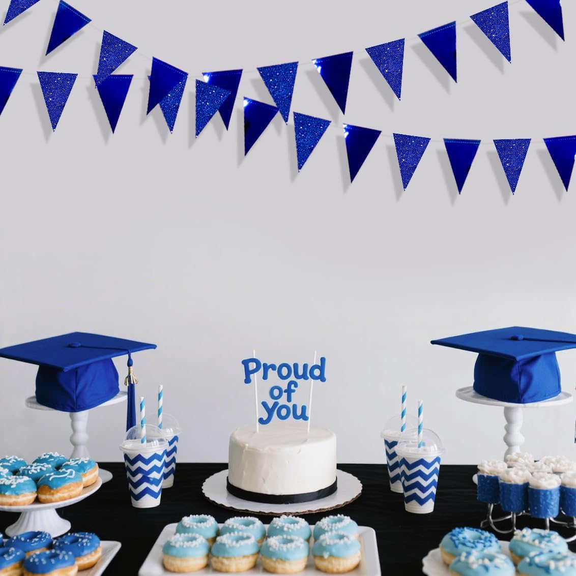 30 Ft Royal Blue Party Decorations Navy Blue Metallic Glitter Paper Triangle Banner Flag Garland Pennant Bunting for Graduation Birthday Wedding Bridal Shower Ahoy Achor Nautical Theme Party Supplies