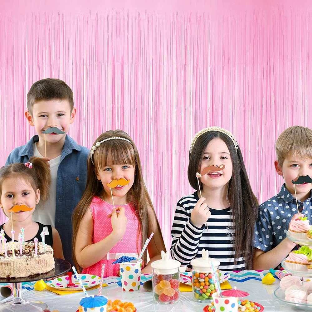 BEISHIDA 2 Pack Pink Tinsel Foil Fringe Curtains Light Macaron Metallic Curtain Photo Backdrop for Wedding Party Birthday Stage Bridal Shower Decor(3.28 ft x 6.56 ft)