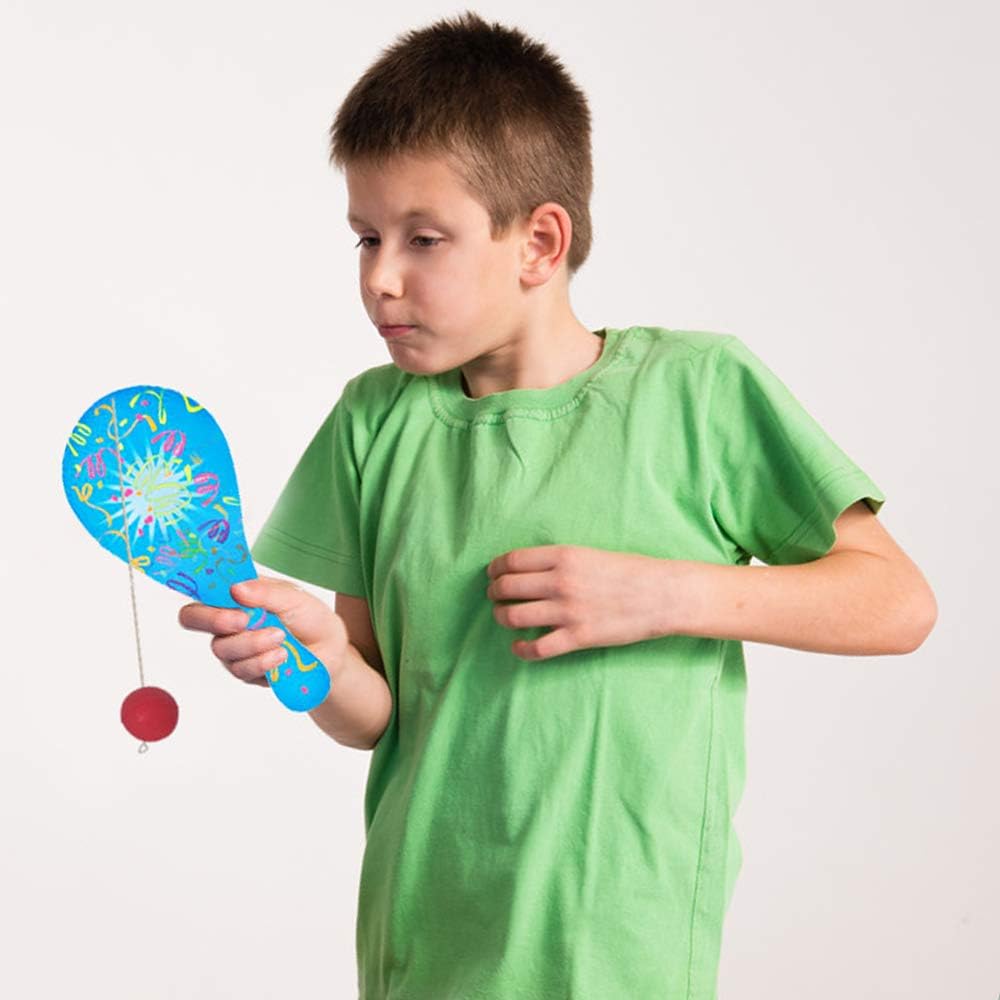 • BUILT TO LAST: We’ve combined a 9.25” plastic paddle, rubber ball, and elastic string to create a smile-sparking toy durable enough to withstand all the paddling action. Gather friends and family and compete who can hit the ball with consecutive flawlessness.
