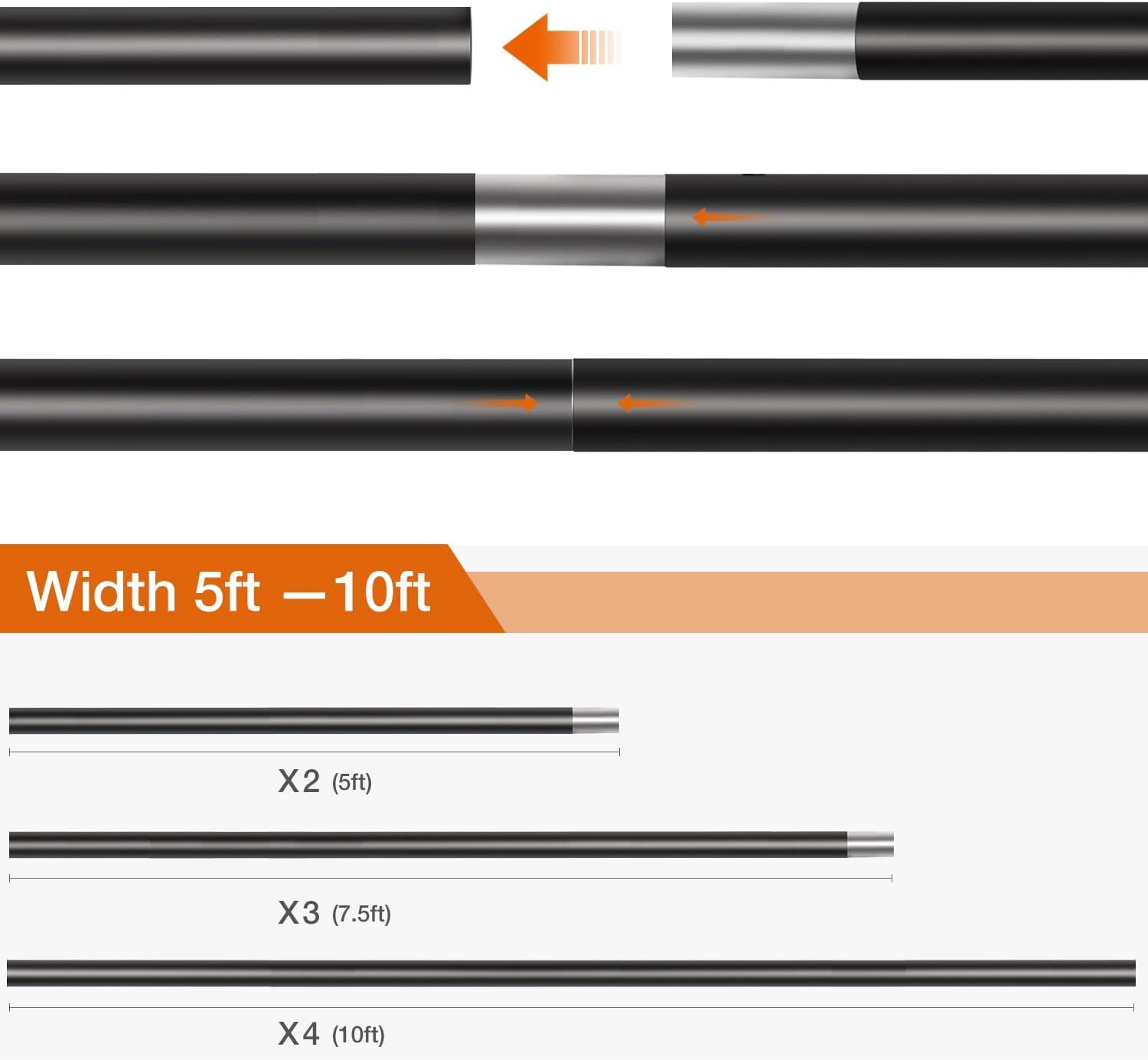 • 4 x CROSSBAR: Adjustable width (Min 5ft – Max 10ft), easy to connect, telescoping top crossbar, aluminum alloy support stand, professional lightweight pipes and support stands for professional photography, photo studio, family gathering, wedding, baby shower, party decoration, video shooting, live steaming like YouTube, TikTok, Facebook, Instagram, etc. Also this photo backdrop stand can be hung with green screen, canvas, muslin, cotton, paper and PVC background backdrop paper.