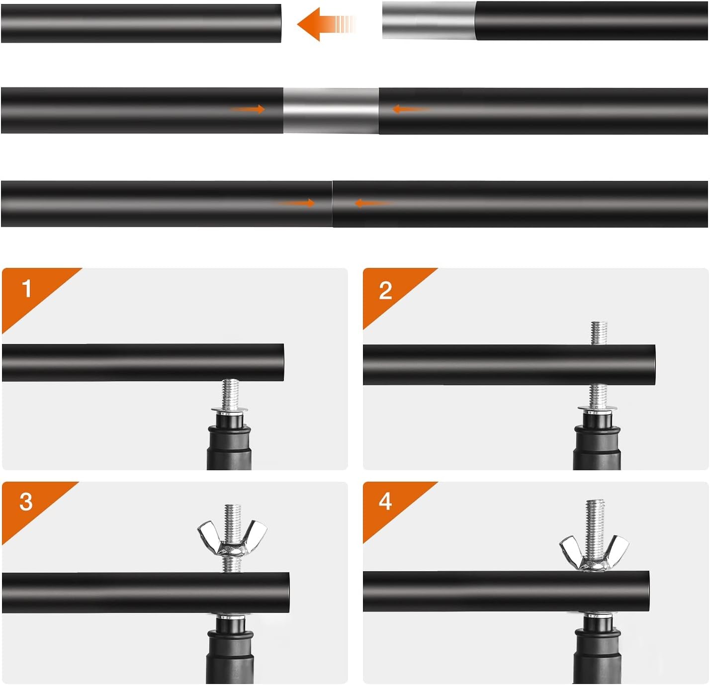 • 4 x Crossbar - Telescopic top crossbar with adjustable width: min width 5ft-max 10ft. The crossbar is easy to assemble and disassemble, can support canvas, muslin and paper background, etc