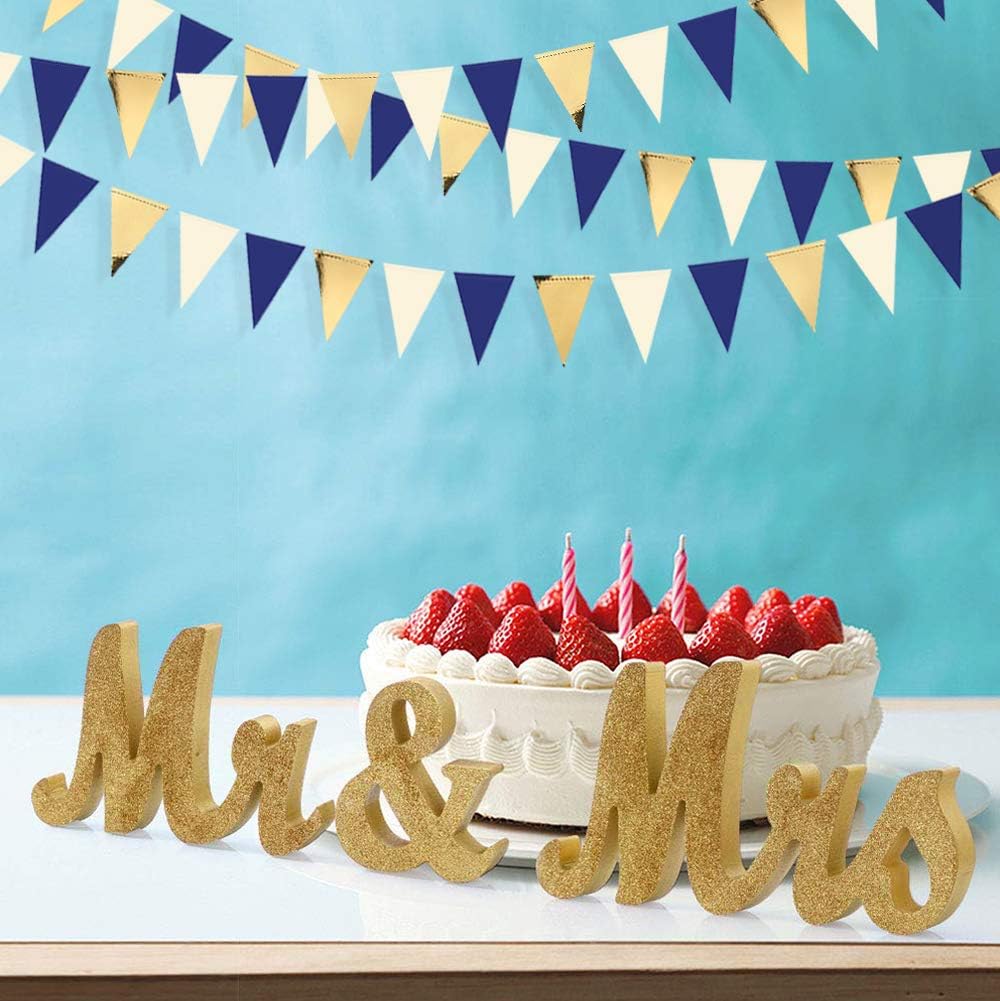• Environmental Material-Our gold and navy blue pennant bunting are made of two different materials paper.Double sided metallic paper and high quality card stock,safe and non-toxic,durable and reusable.