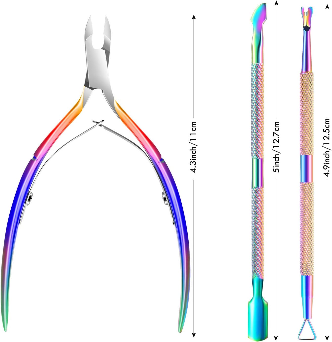 • Ergonomic Non-slip Handle Design -- Our professional cuticle remover tools set is designed with an ergonomic non-slip handle, providing you with a comfortable hand feeling, you can remover the cuticles more effectively. In addition, the chameleon design makes it a beautiful set of color manicure artwork.