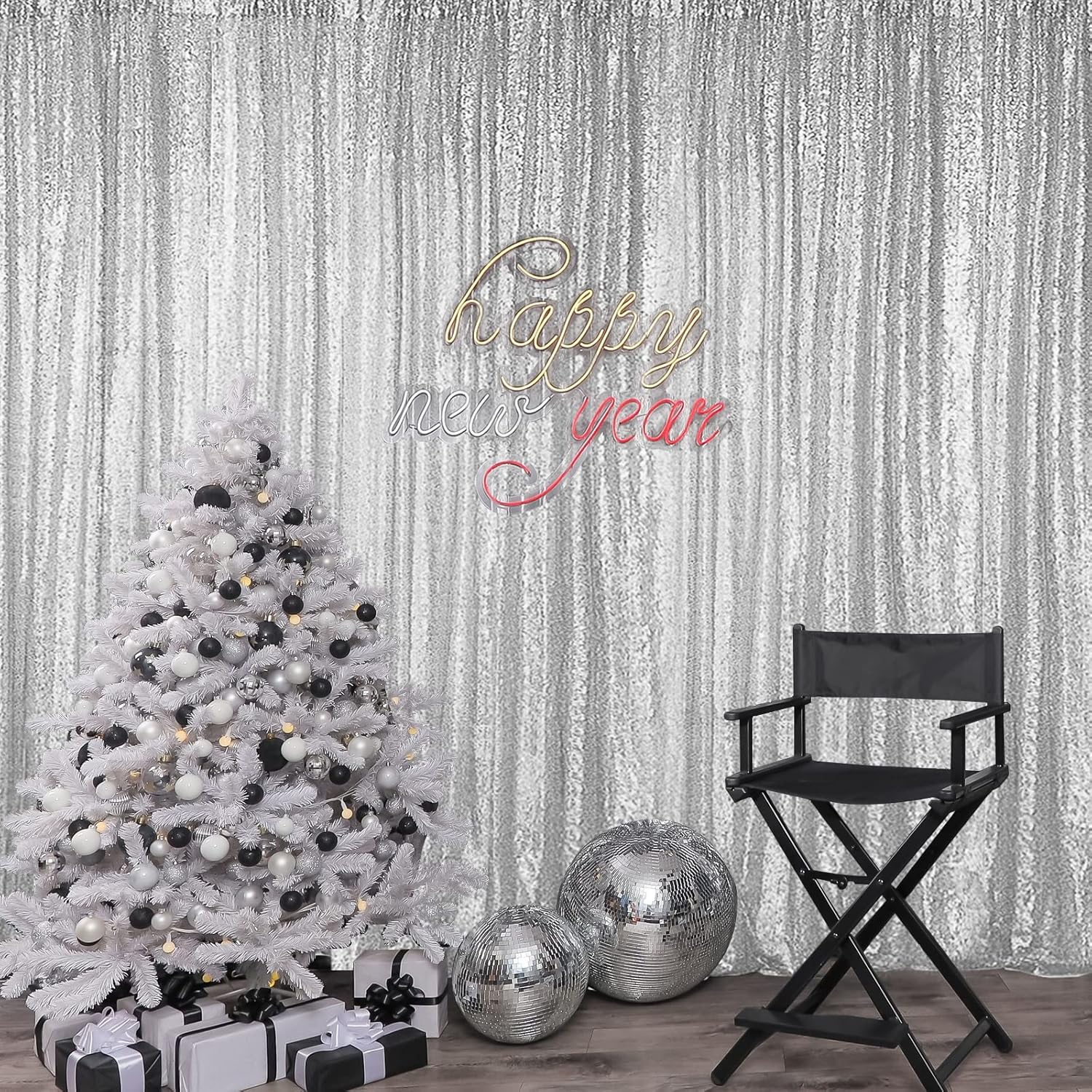 Hahuho Silver Sequin Backdrop Curtain, 4PCS 2FTx8FT Glitter Backdrop Curtain for Parties, Christmas, Wedding, Party Decoration(4 Panels, 2FT x 8FT, Silver