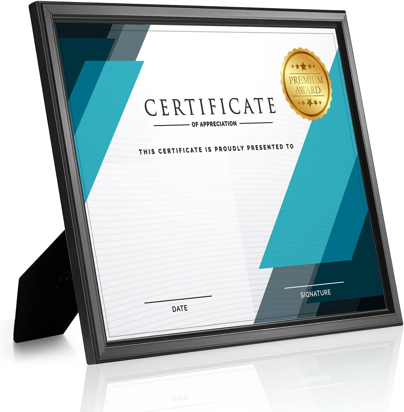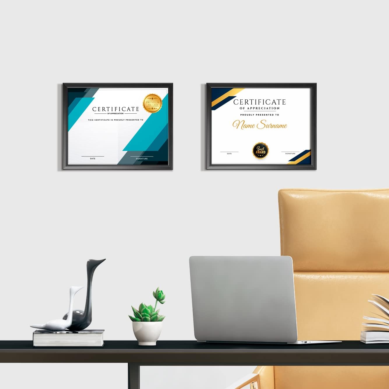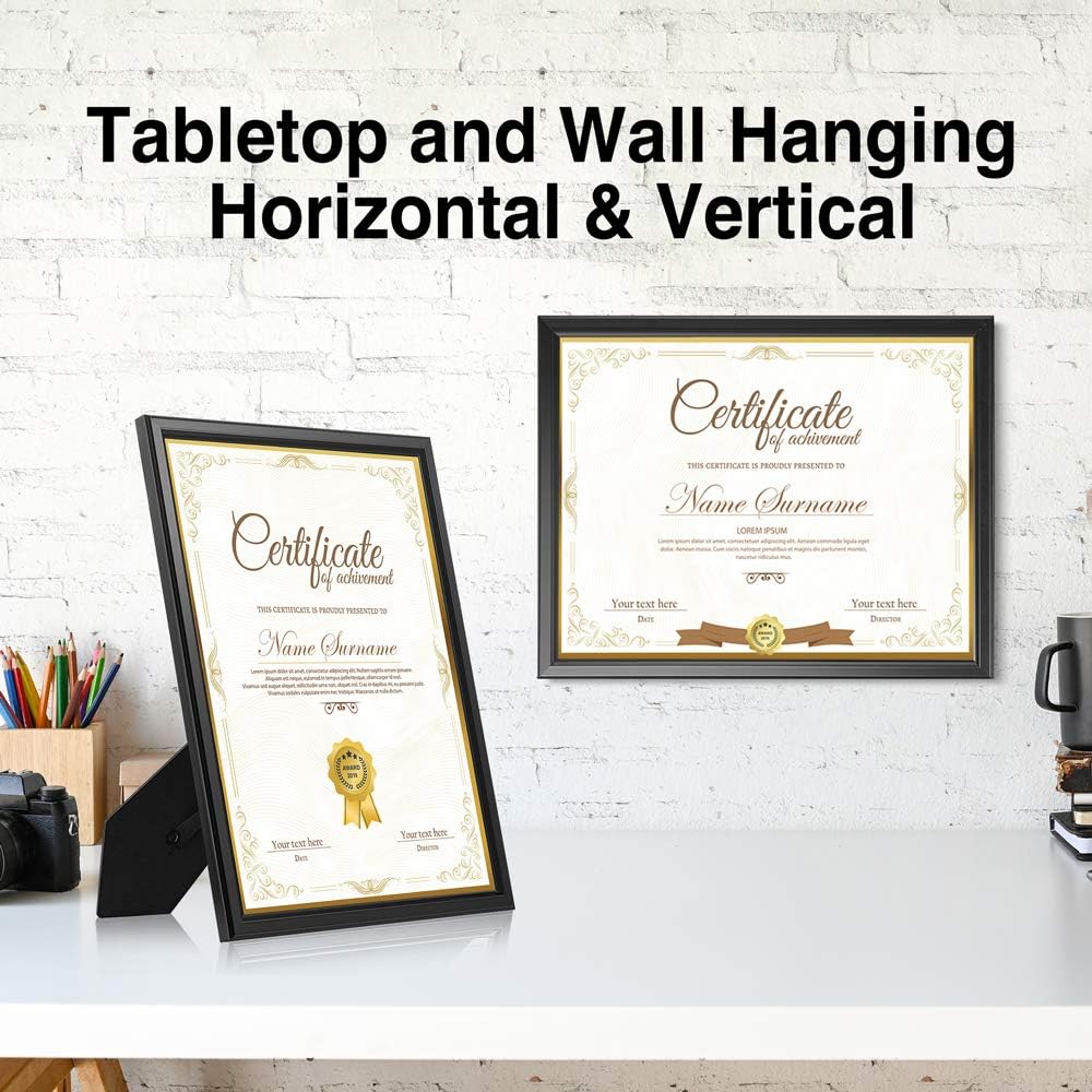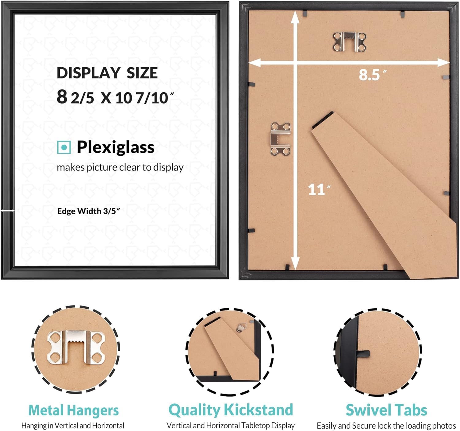 • PACKAGE INCLUDES - Set of 12 black frames, fits standard 8.5x11 inches pictures, photos, prints, with real glass to protect against dust and moisture. Tips: wall hooks or fasteners are not included in the package.