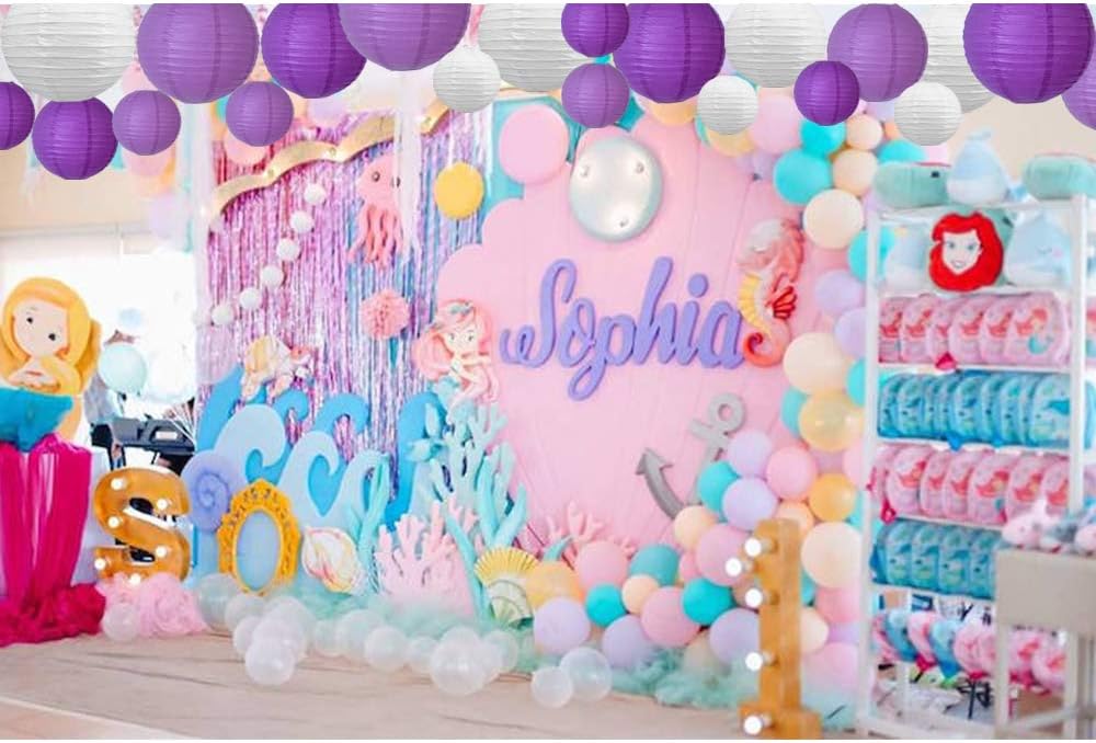 BEISHIDA 21 Pcs Lavender Purple White Round Paper Lanterns Decorative Hanging Asia Chinese Japanese Paper Lanterns Lamp for Halloween Birthday Wedding Baby Bridal Shower Home Decor Party Decoration