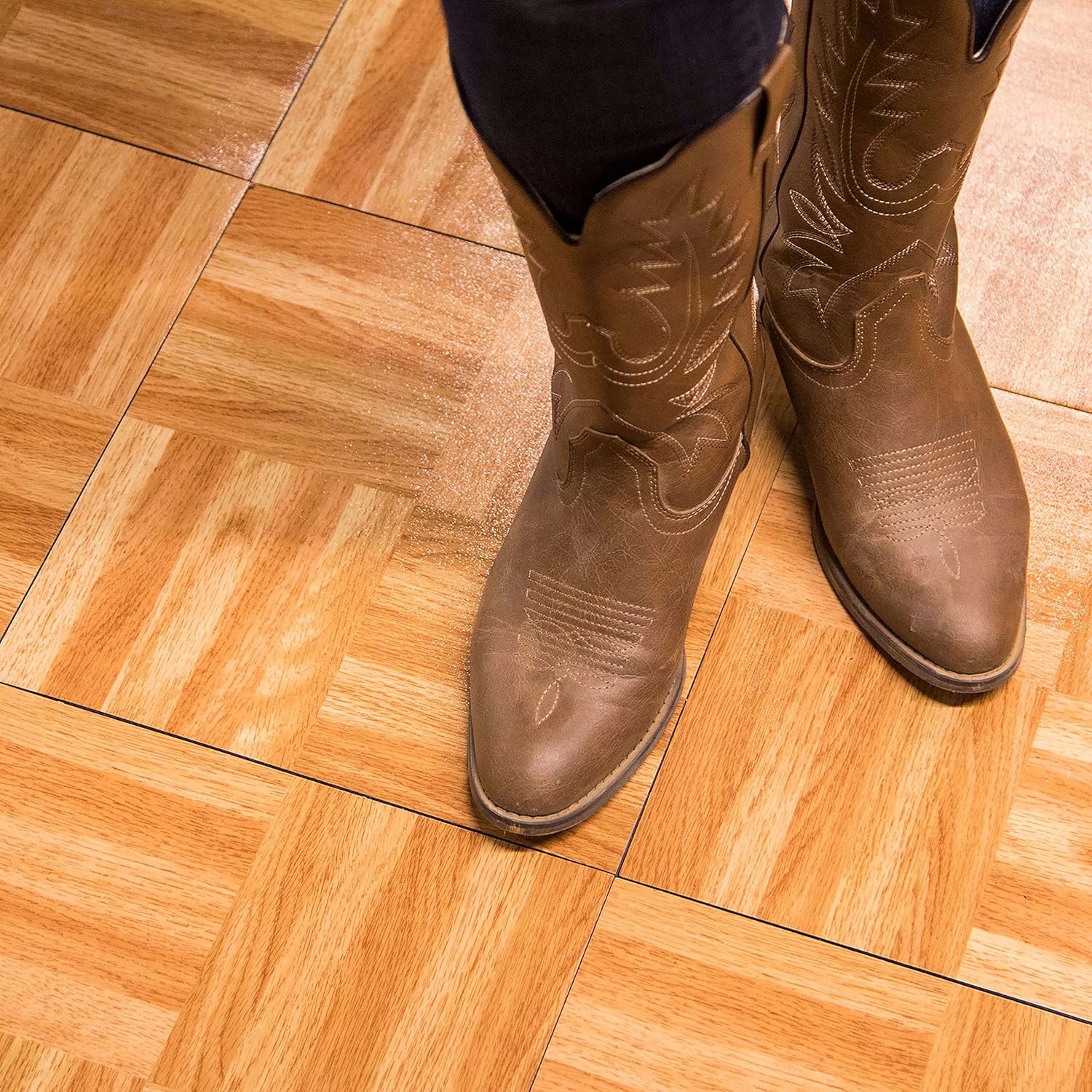 IncStores 3/8" Thick Snap Together Dance Flooring | 12"x12" Printed Vinyl Dance Floor for Practice & Performance | Beachwood | 1 Tile Pack