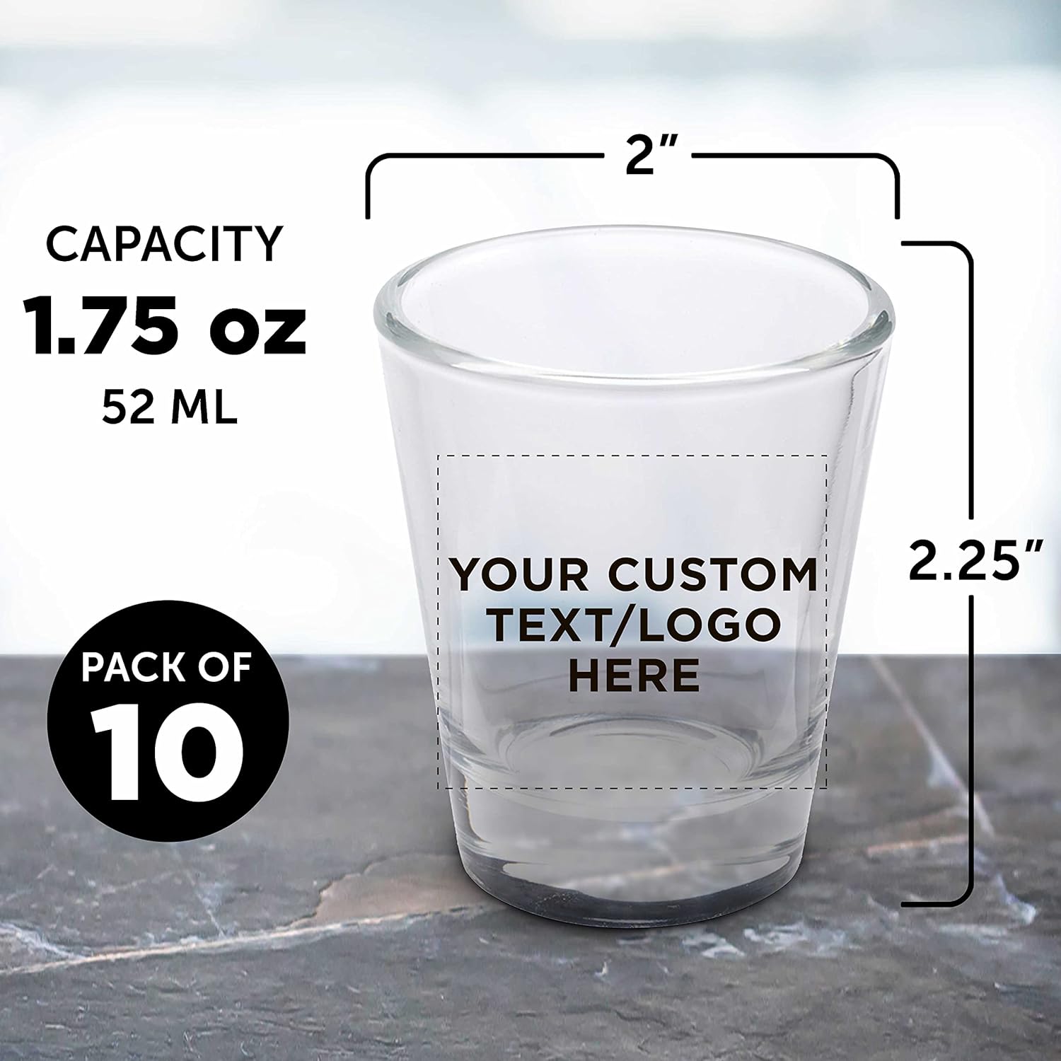 • CUSTOMIZABLE DESIGN - These classic shot glasses have a thick protruding base to add a small twist to the classic design. Add your text or logo and personalize these party glasses to fit your needs.