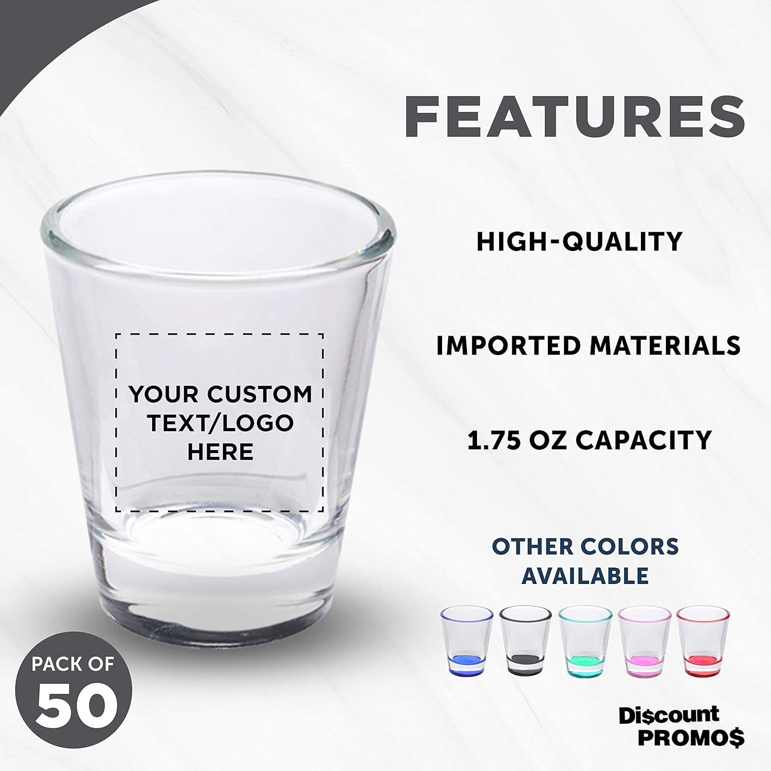 Custom Shot Glasses 1.75 oz. Set of 50, Personalized Bulk Pack - Great for Wedding Favors, Bachelorette Party Decorations, Party Fovors, Color Bottom - Clear