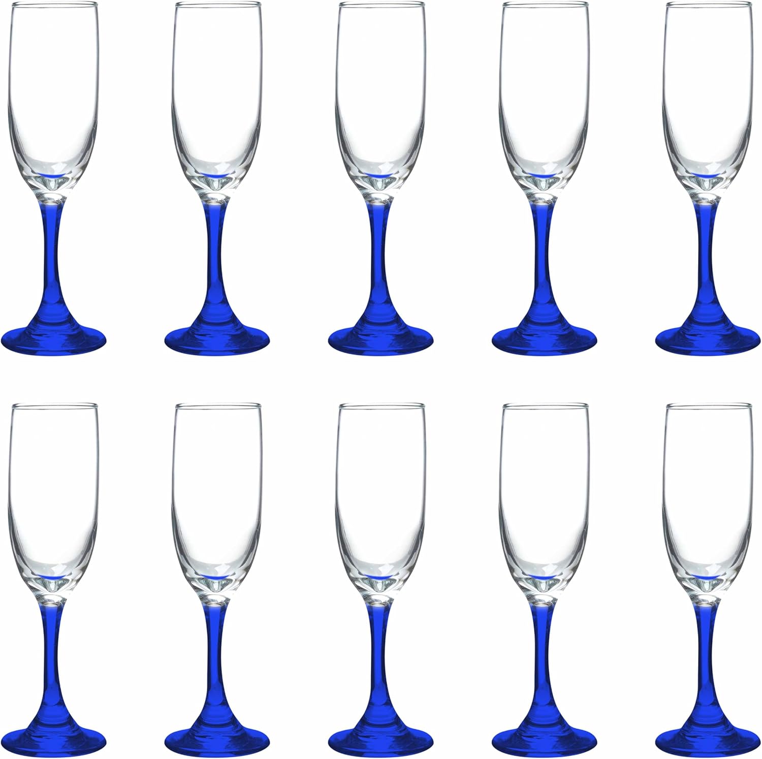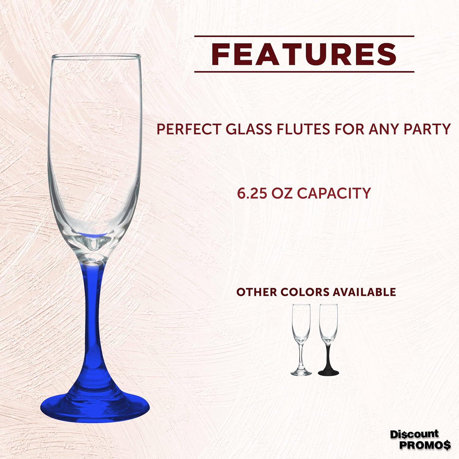 DISCOUNT PROMOS Premiere Champagne Flutes 6.25 oz. Set of 10, Bulk Pack - Elegant Drinkware for Weddings, Events, & Promotional Gifts - Blue