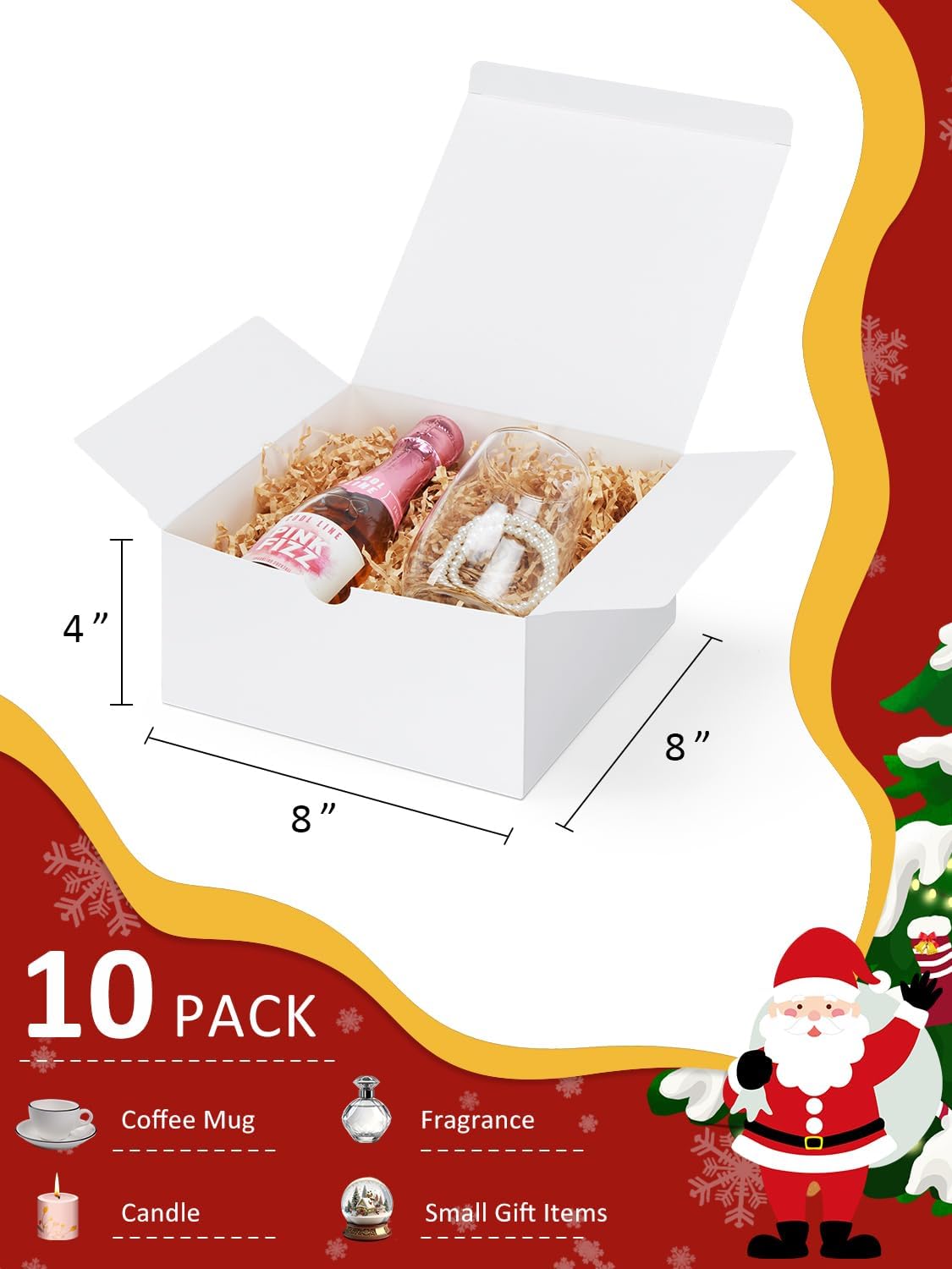 Eupako White Gift Boxes 8x8x4 10 Pack, Kraft Paper Gift Boxes with Lids for Bridesmaid Proposal Gifts, Wedding, Birthday, Crafting, Graduation, Holiday, Christmas