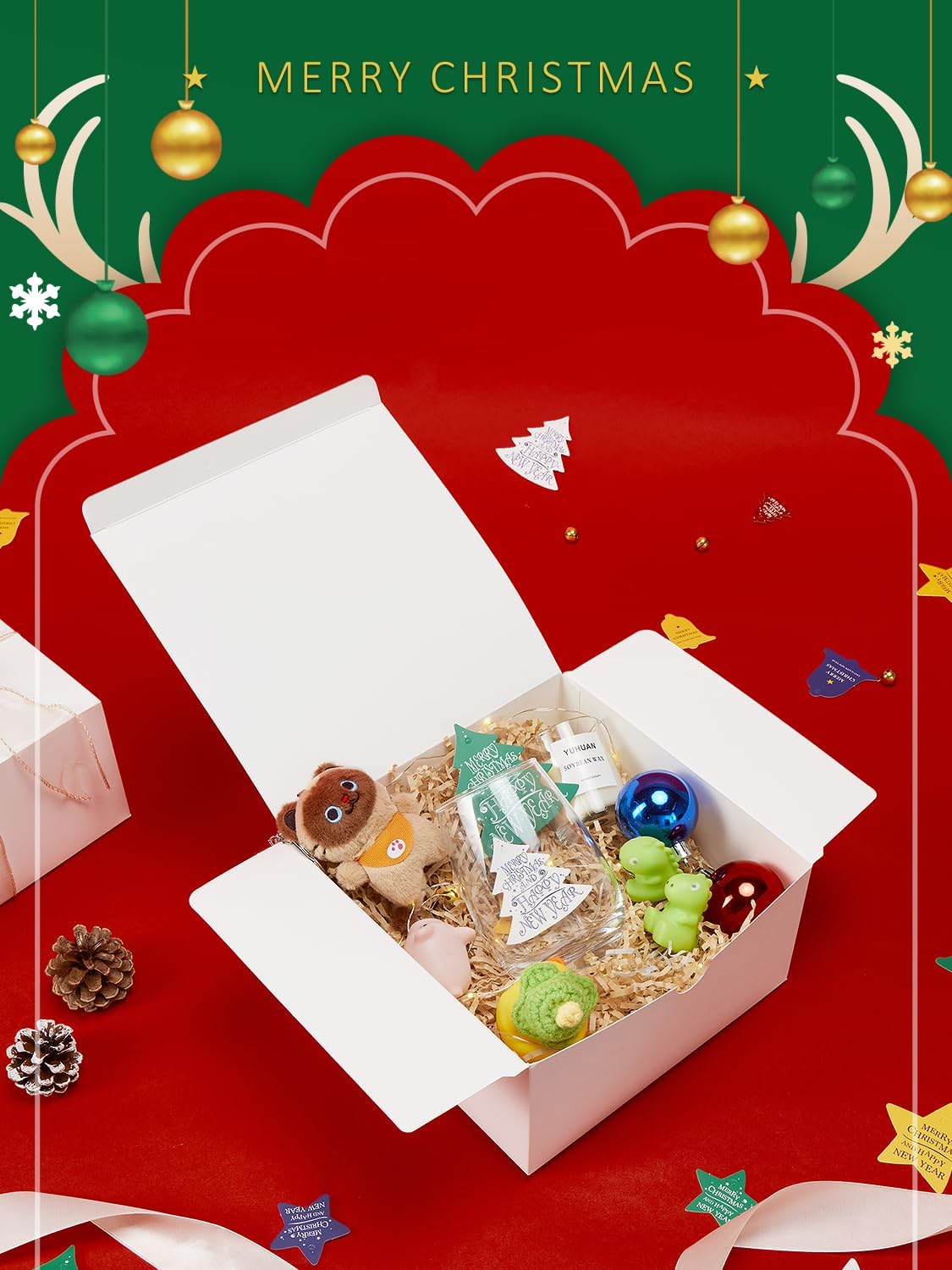 • Gift Boxes 10 Pack 8x8x4: Eupako white gift boxes are made of high quality kraft paper, sturdier and more durable than others in bearing capacity with a elaborate bottom structure. Gift Box Size: 8x8x4 Inches