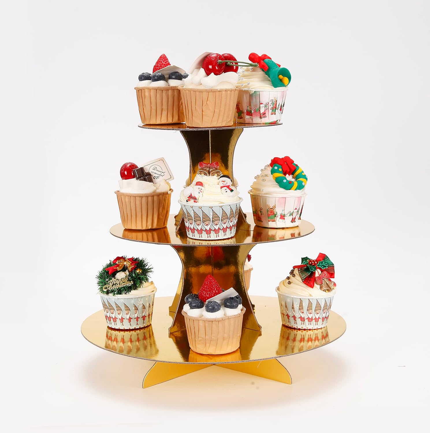 3-Tier Cupcake Stand, Gold Cardboard Cake Stand Holder, Tiered DIY Cupcake Stand Tower for Dessert Table Displays, Birthday Theme Party Favors Decoration, Floral Tea Party, 12" W x 12.8" H