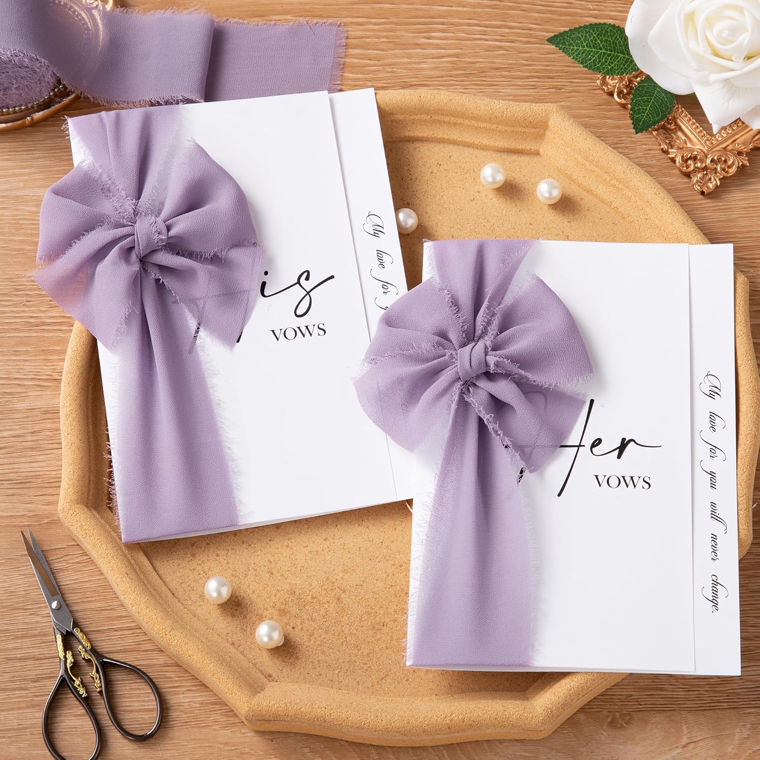 • 【Size and Color】Each roll of chiffon ribbon is 2 inches wide and 7 yards long, perfect for various creative uses such as making bows, decorating wreaths, and DIY crafts. This set includes plum, pastle purple, and ivory ribbons, one roll each. These vibrant frayed ribbons add a rustic charm to your creations, ideal for bouquet wrap or gift ribbon.