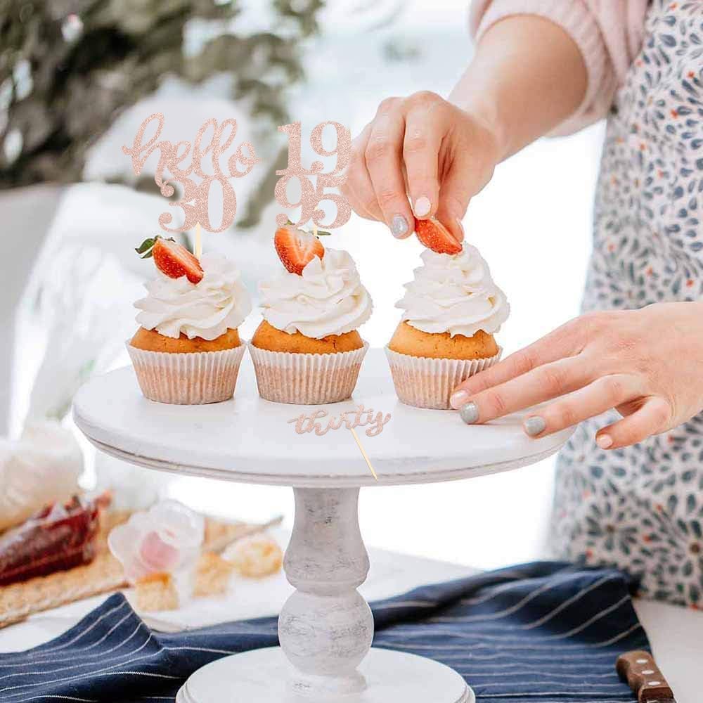 • Package Includes: 8 Pieces “1995” Number Glitter Cupcake Toppers, Size : 1.4 inch*2 inch; 8 Pieces “Thirty”Glitter Cupcake Toppers, Size : 2.6 inch*1.6 inch; 8 Pieces “hello 30”Glitter Cupcake Toppers, Size : 2.6 inch*2.2 inch