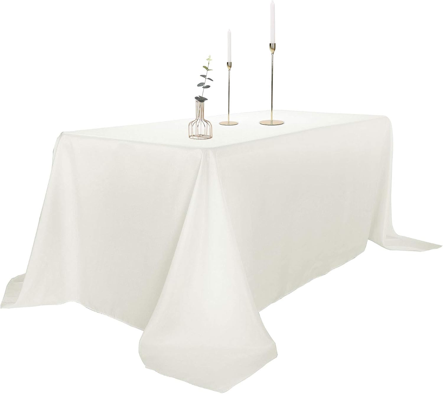 Ascoza 2pack 90x132 Inch Ivory Rectangular Tablecloth 8 Feet Table Cloth in Polyester Fabric for Wedding/Banquet/Restaurant/Parties