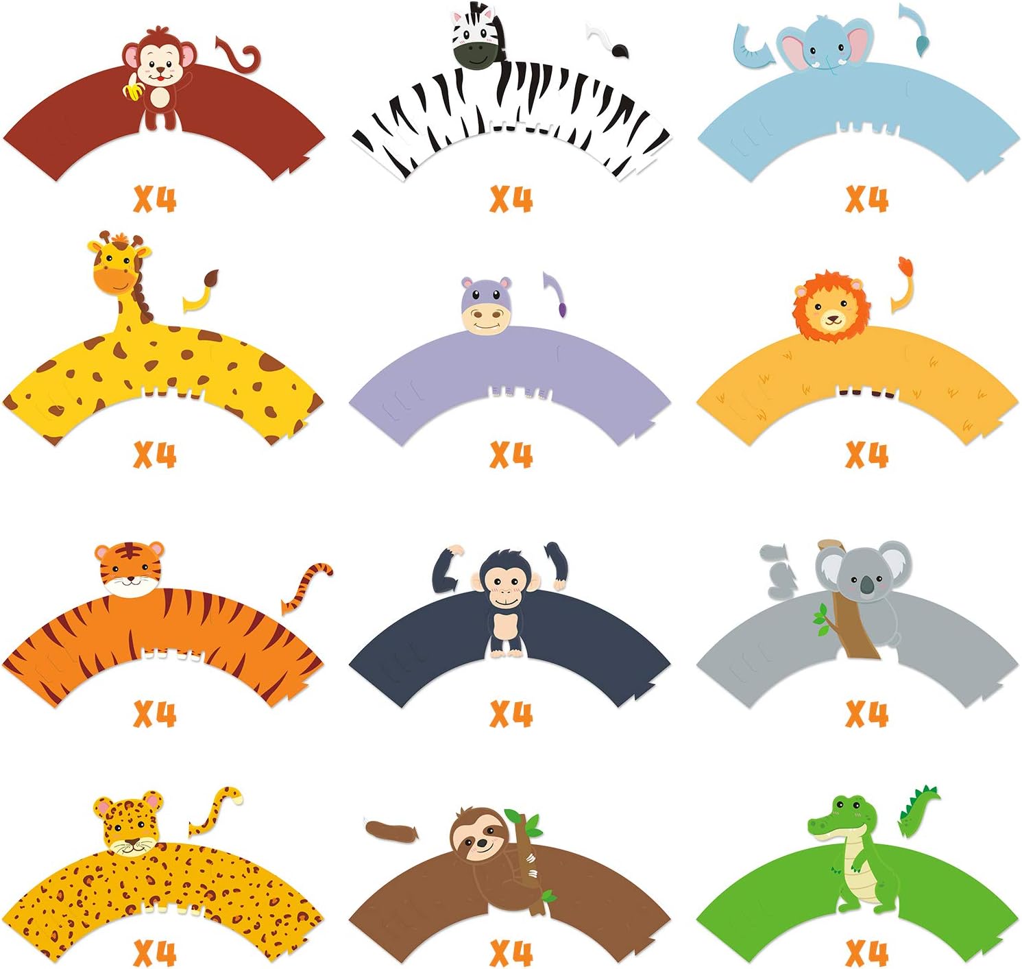 • 【COPYRIGHT RESERVED】Package contains 48pcs jungle safari animal cupcake wrappers. Jungle animals species include Hippo, Crocodile, Koala, Monkey, Orangutan, Elephant, Lion, Giraffe, Tiger, Zebra, Sloth and Leopard. They will surely be a hit of your jungle animal themed party.