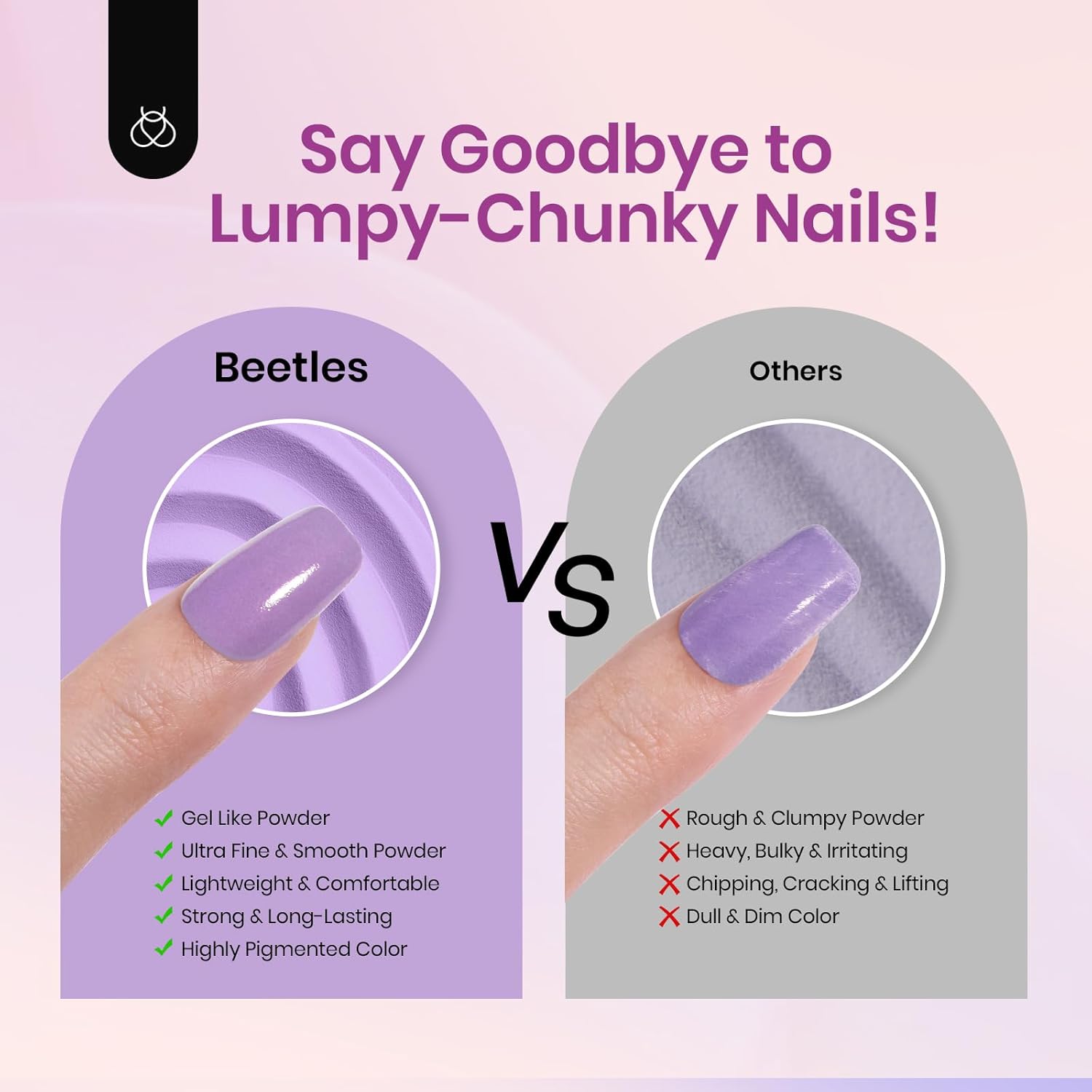 • High Quality Long Lasting: Beetles nail dip powder kit is long lasting, chip resistant and easy to apply, suitable for all kinds of nails. It looks natural, lightweight, and has impeccable shine, keeping the nail art gorgeous and shiny for about 3 weeks or more.