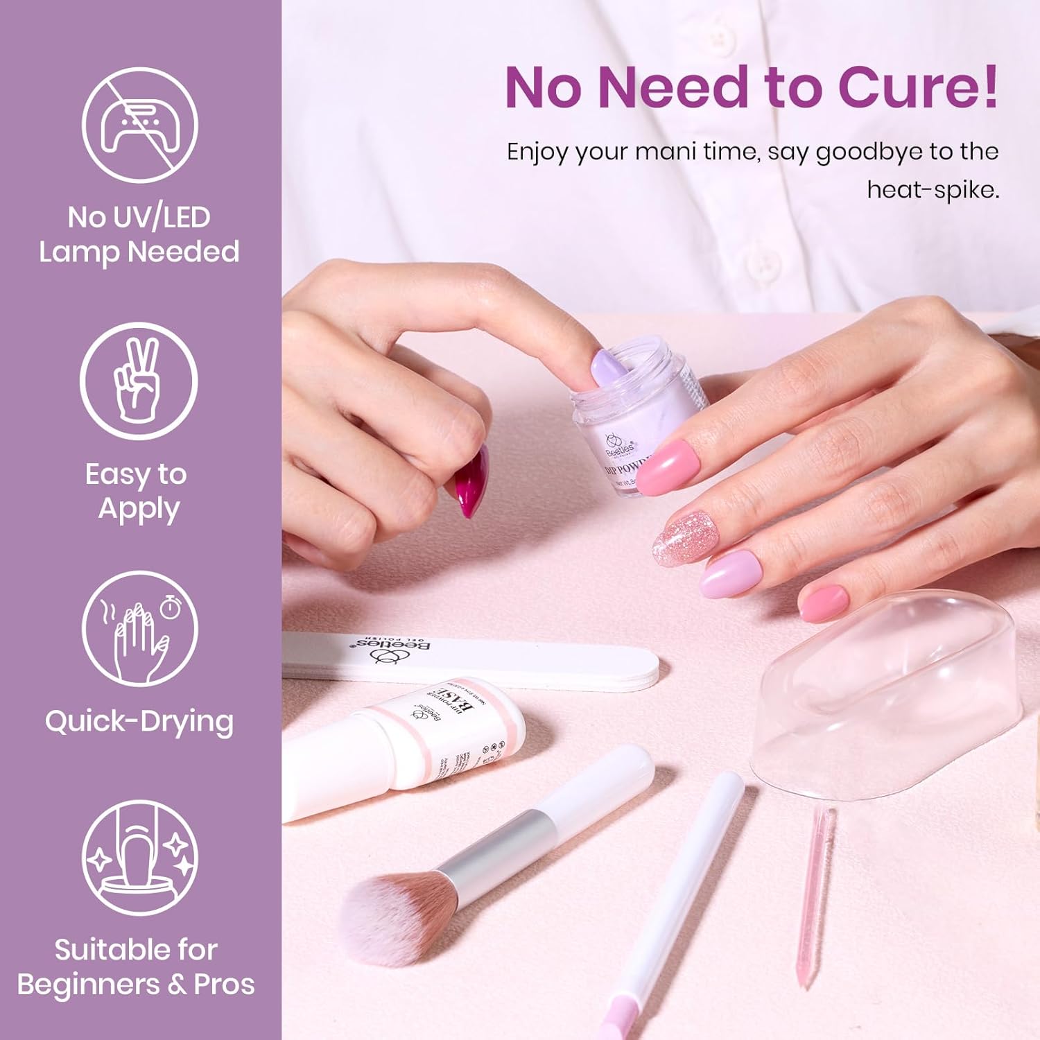 • Safe and No Need Curing: Compared to traditional nail lacquer, gel polish, and traditional acrylic systems, the dip nails powder starter kit doesn't need a UV light to cure, which is better for your skin and nails. The dip powder is low odor, would not damage your nail bed, and is available for air dry. It's safe and easy to handle for both professionals and home users.