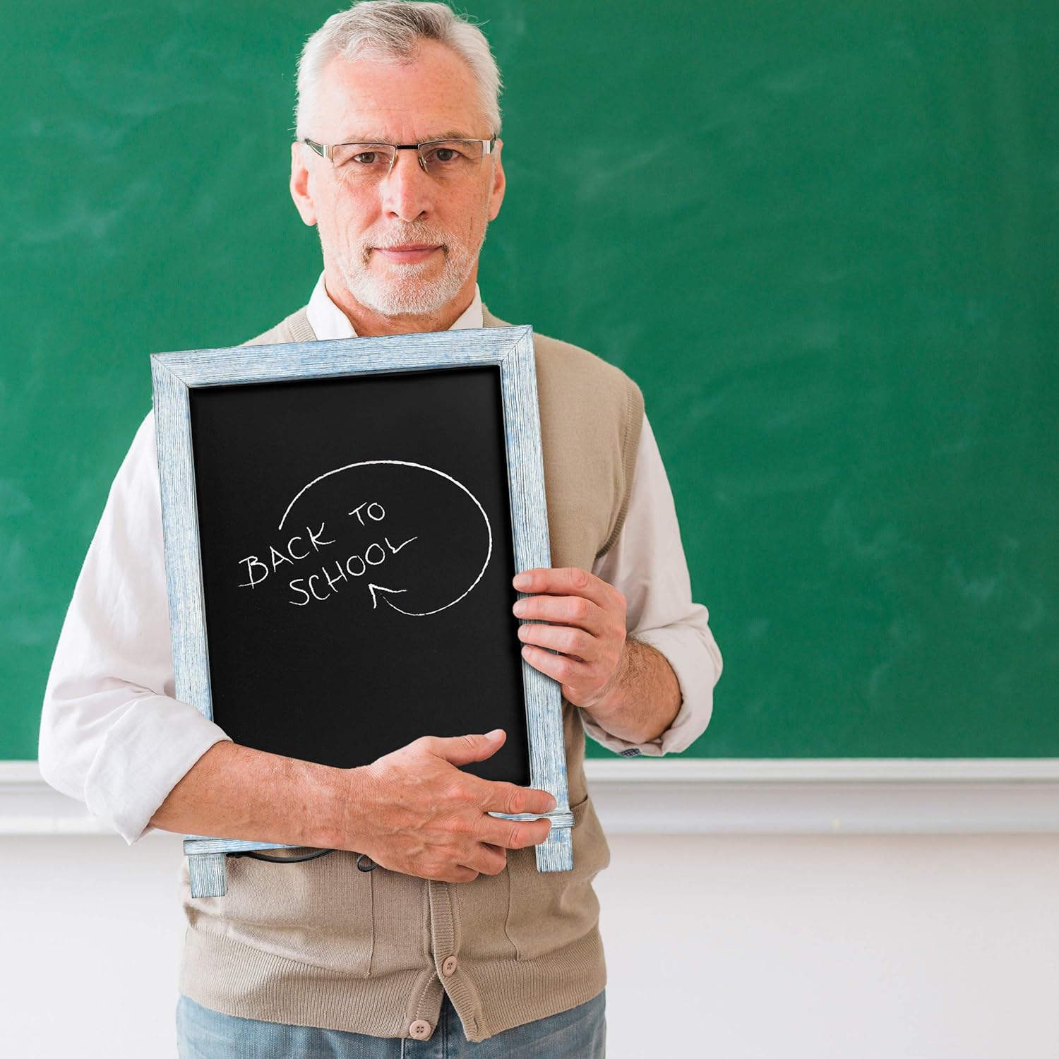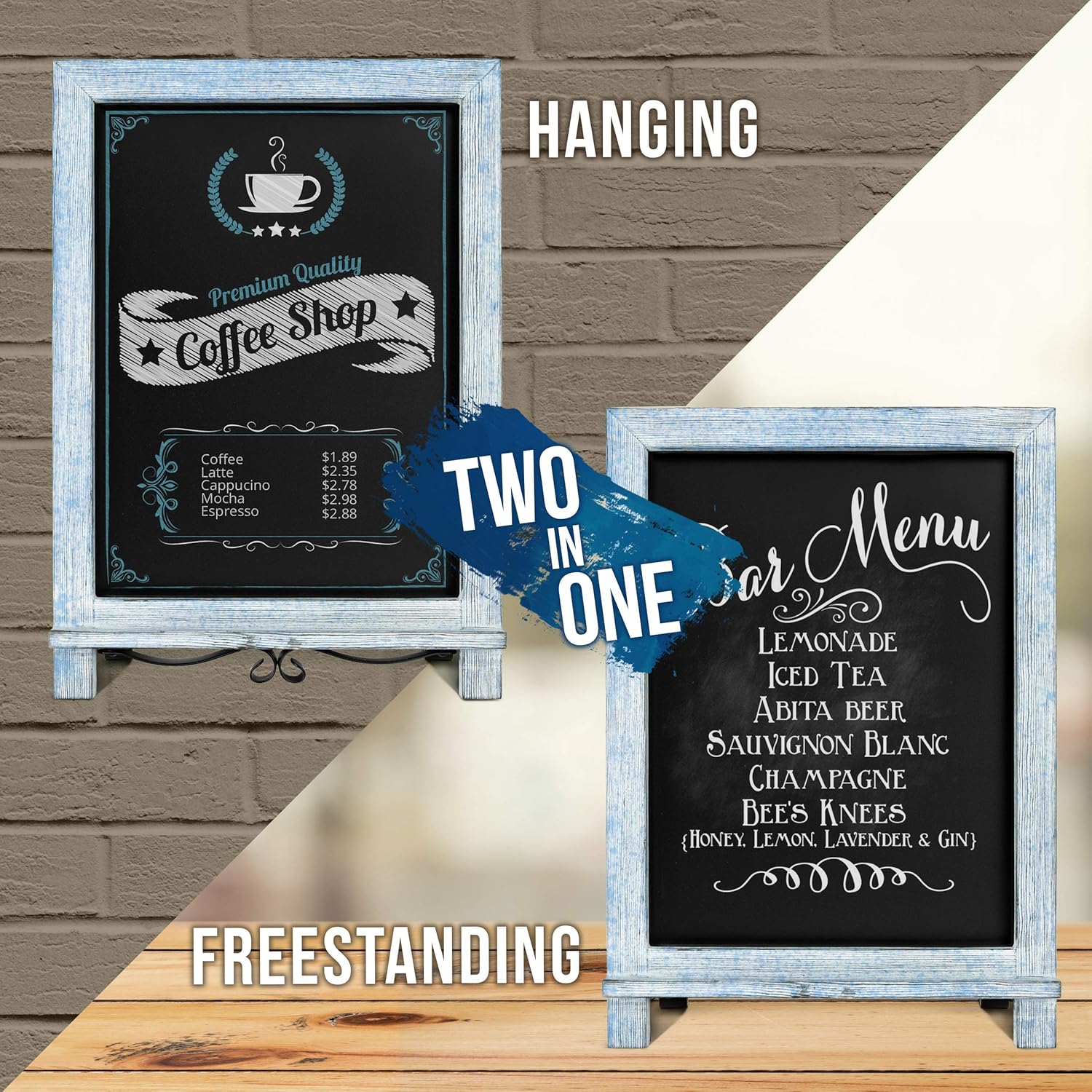 HBCY Creations Rustic Blue & White Tabletop Chalkboard with Legs/Vintage Wedding Table Sign/Small Kitchen Countertop Memo Board/Antique Wooden Frame (12" x 17", 5- Rustic Blue)