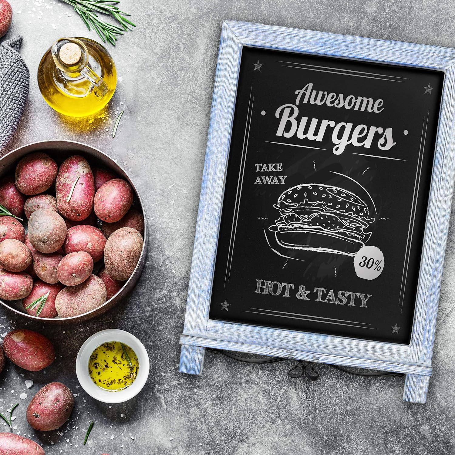 • VERSATILE DESIGN - Our small Chalkboard Easel was designed with maximum versatility. It can be used as a FREESTANDING chalkboard on tabletops or as a HANGING wall chalkboard. Our Patent Pending Design includes foldable metal legs and wall hanging hardware so its ready to use straight out of the box.