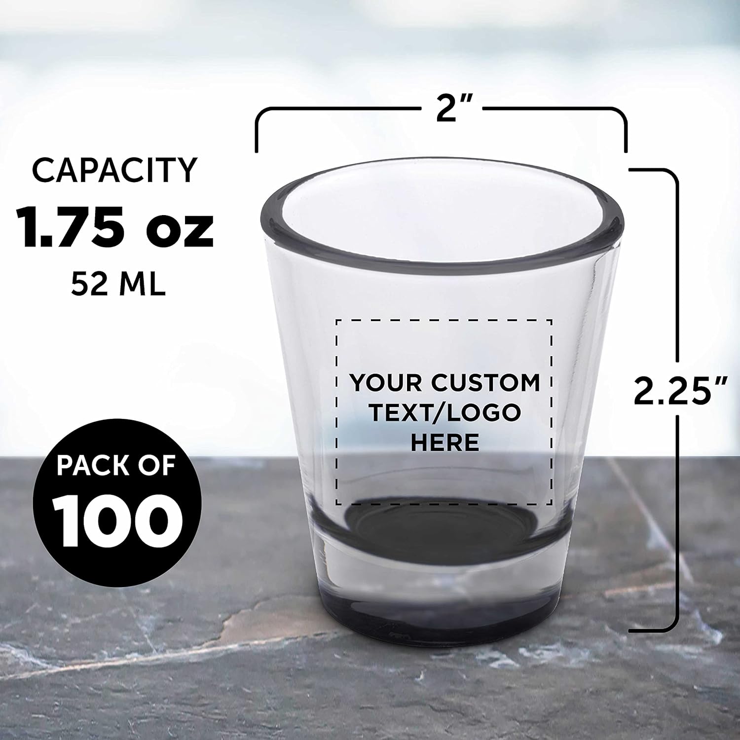 • CUSTOMIZABLE DESIGN - These classic shot glasses have a thick protruding base to add a small twist to the classic design. Add your text or logo and personalize these party glasses to fit your needs.
