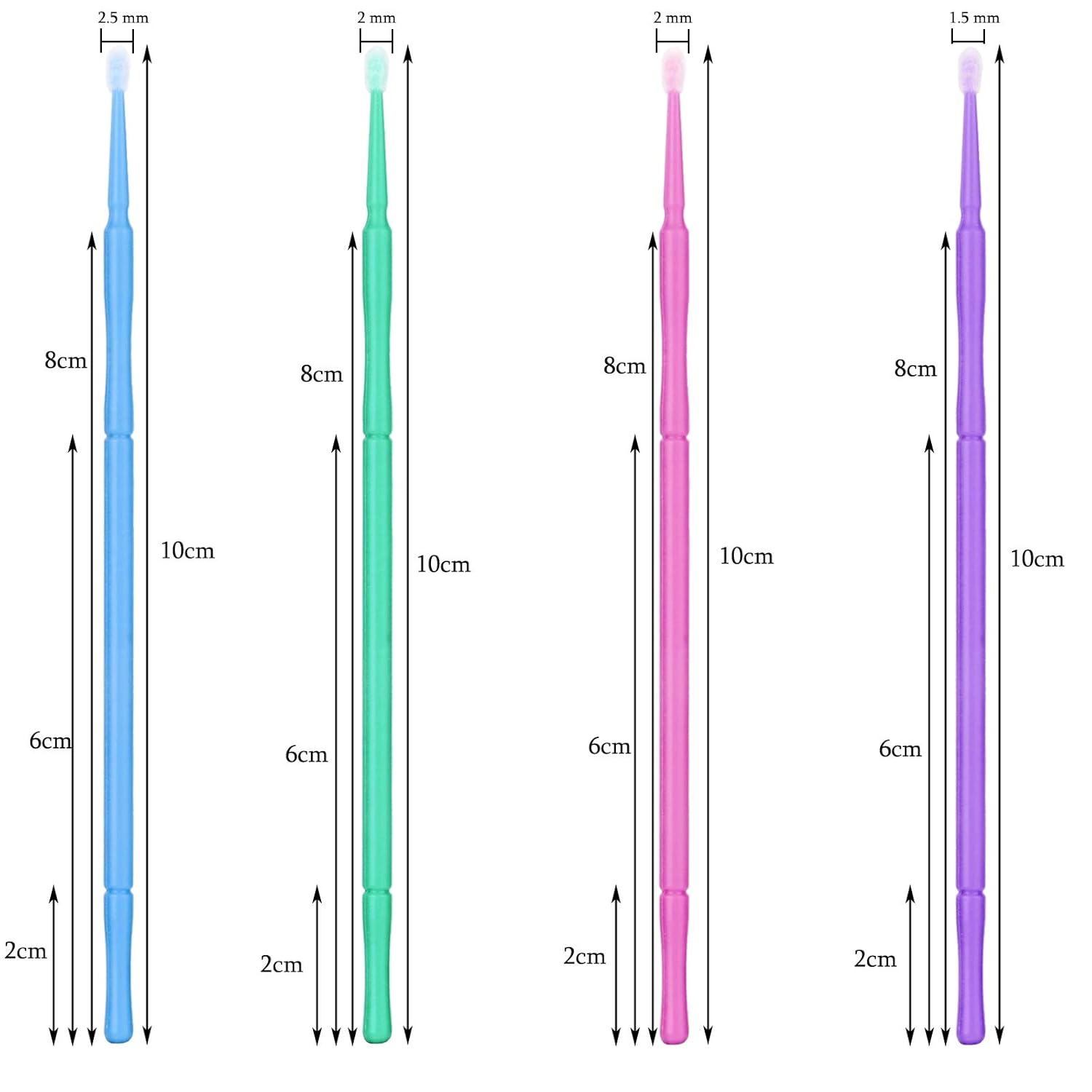 • Microfiber Tips And Plastic Handle; Length:10cm / 3.9”,Head Diameter: 2.5mm/Large Size(Dark Blue); Package Includes 500pcs Micro Brushes, And Every 100pcs In A Clear Plastic Bags Which Keeps Them Clean And Tidy.