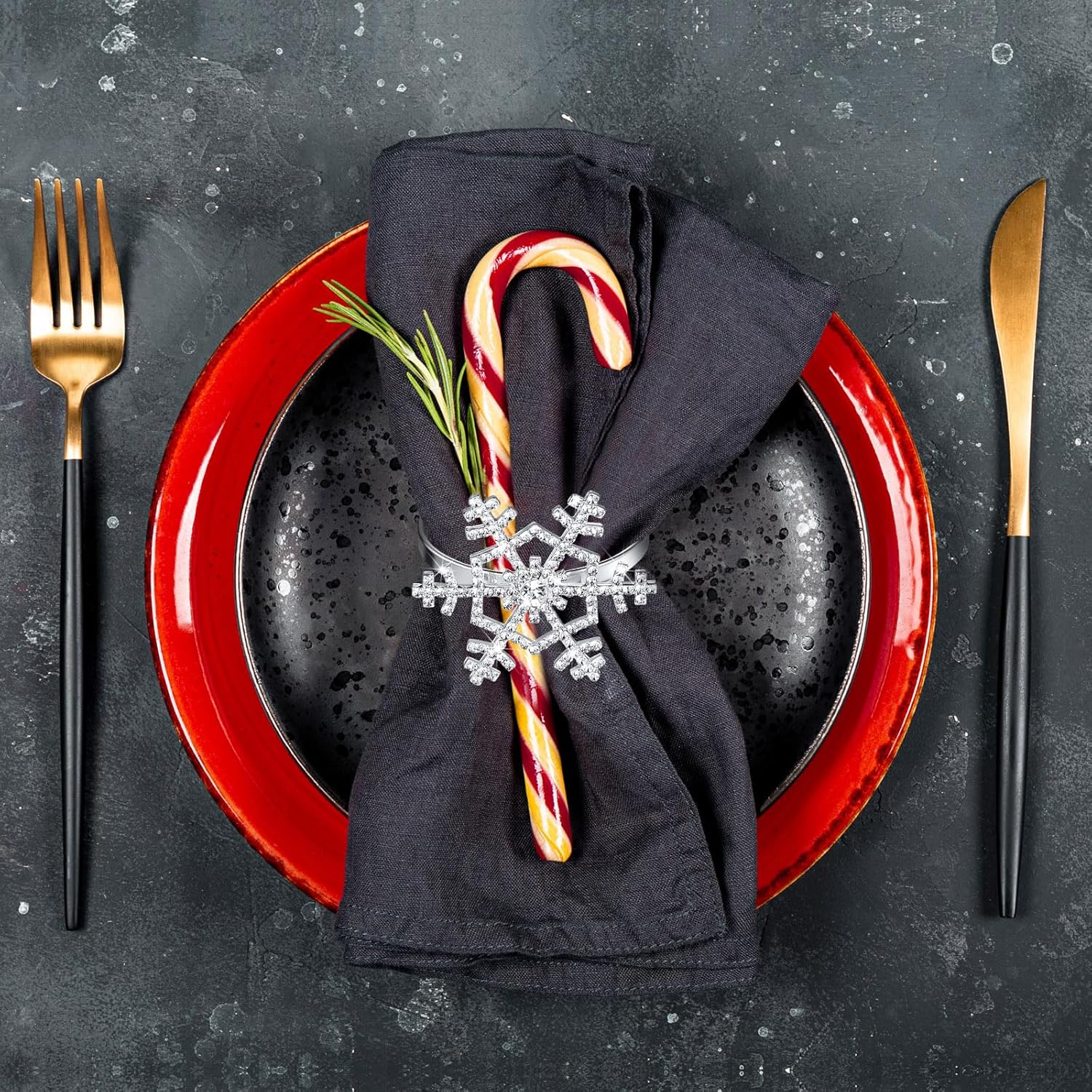 Patelai 12 Pieces Snowflake Napkin Rings Thanksgiving Christmas Napkin Holders Exquisite Household Rhinestone Napkin Rings Set for Christmas Wedding Dinner Party Table Decoration (Silver)