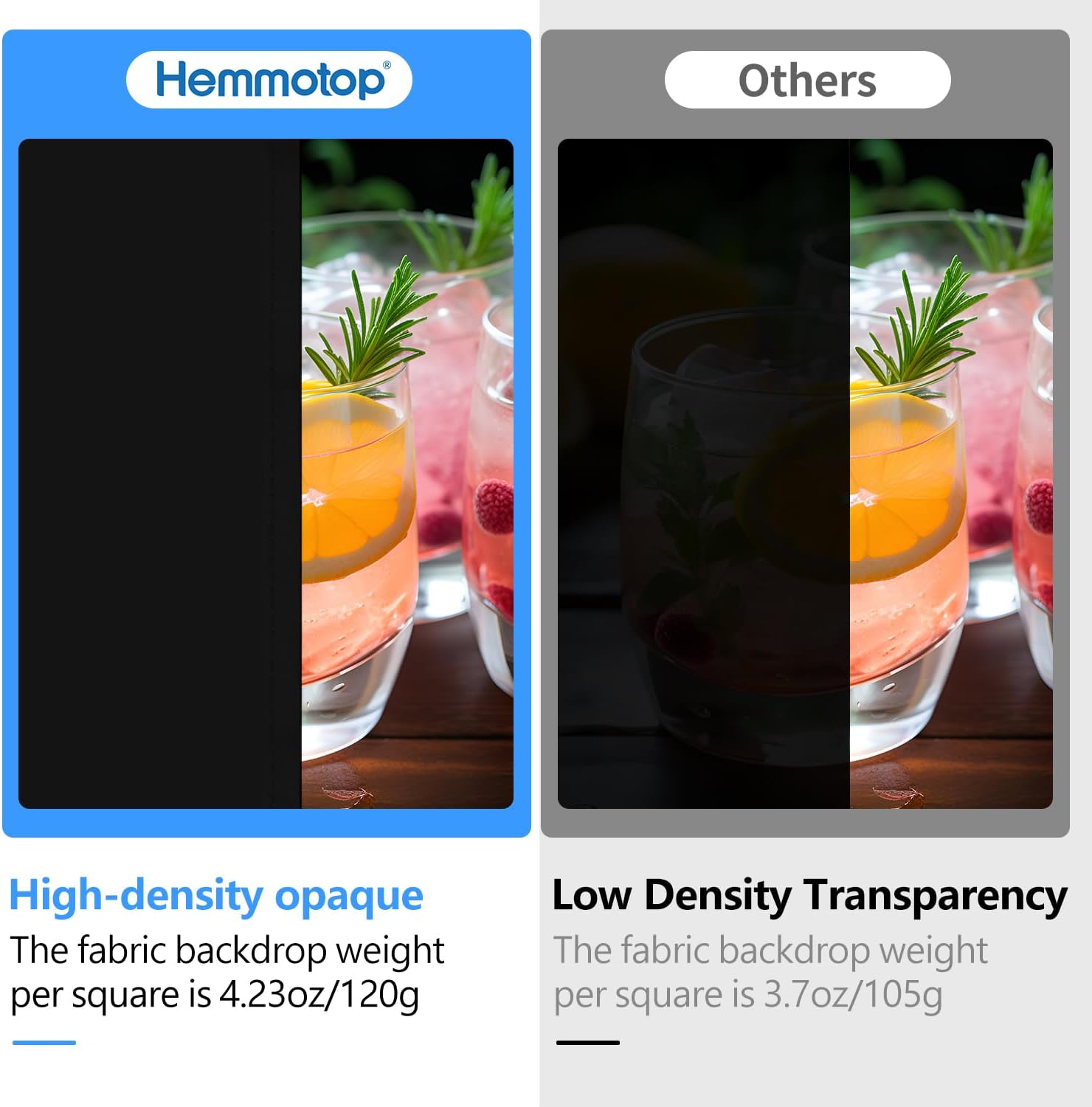 • Great Quality & Less Wrinkles: HEMMOTOP black backdrop made of polyester material, the muslin side is thick and matte, while fabric side is anti-wrinkle and dust resistant