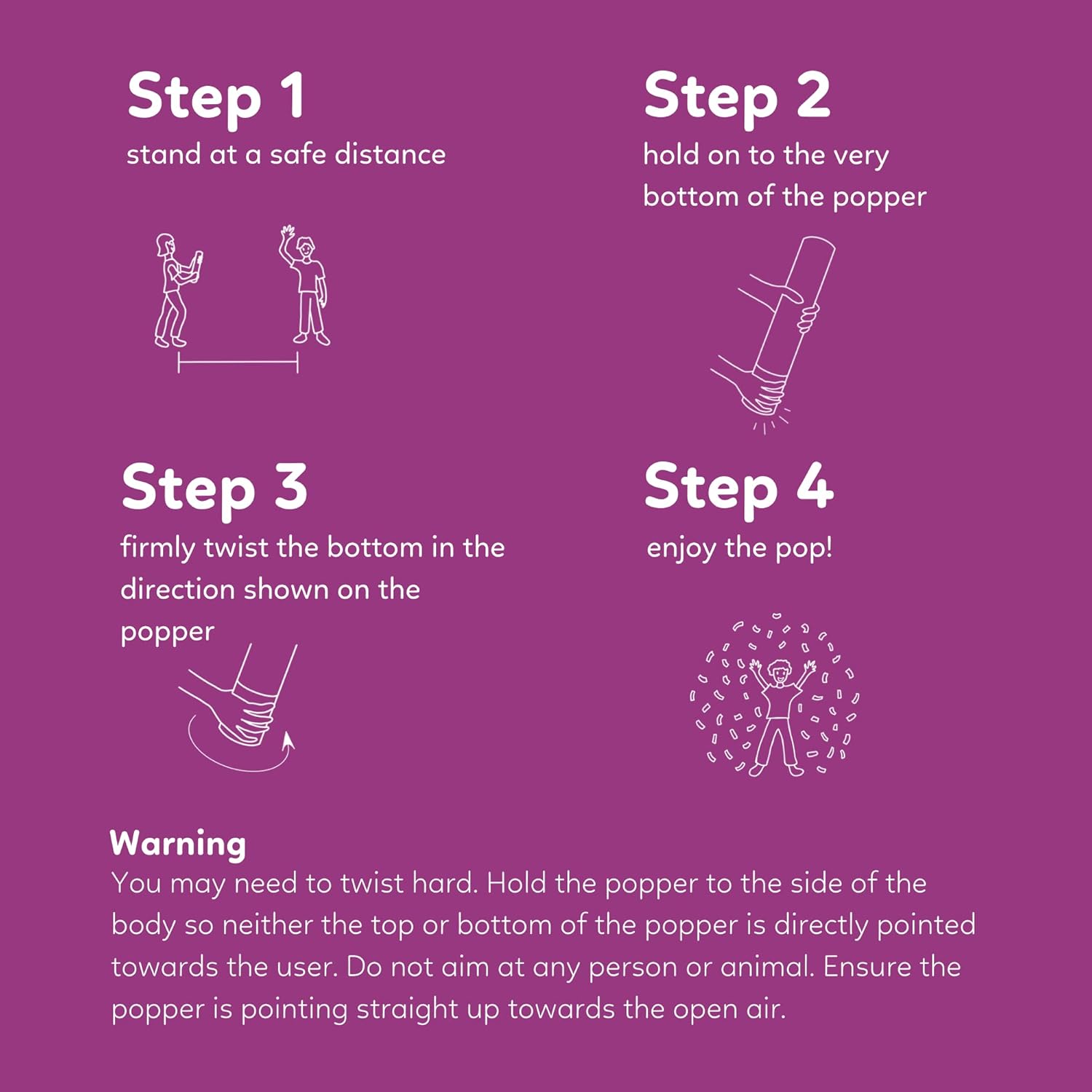 • NO MESS Every party popper is packed with bright, easy to clean streamers, so you can celebrate with all your loved ones and be stress-free knowing there is minimal cleanup.