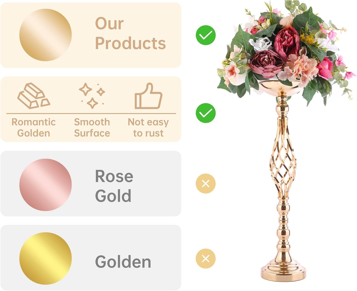 • PACKAGE INCLUDES: 2 pcs of gold wedding centerpieces. These centerpieces are 59cm/23.23" high. Their base is 14cm/5.51" wide, and the top opening diameter is 15cm/5.91".