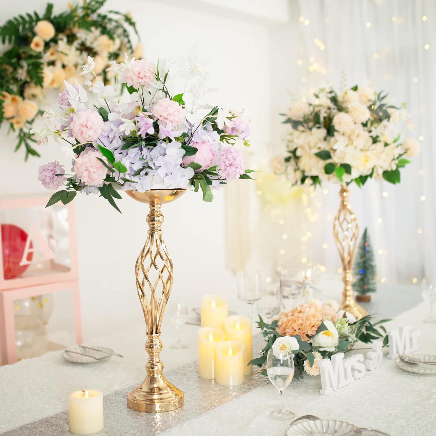 • WEDDING DECORATIONS: These wedding arrangement centerpieces are perfect for your wedding ceremony, wedding party and wedding road-leading. They match fresh flowers, artificial bouquets, flower balls and wedding candles, which can beautifully decorate your wedding moments.