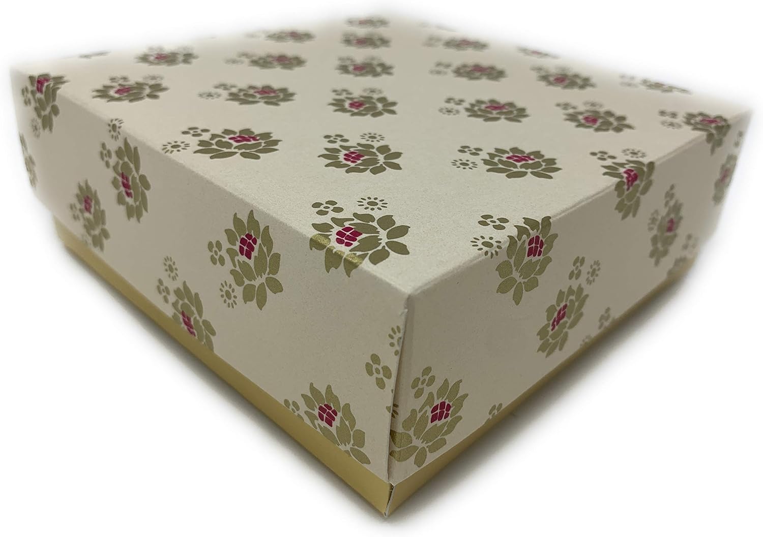 Desi Favors Floral Printed Sweet Boxes for Indian Sweets, Cookies, Goodies, Mithai, Candy, Gift Boxes with Lids Bulk, Handmade Bulk Mithai Box, Favor Boxes for Wedding, 2.95x5.51 Inch (Pack of 4)
