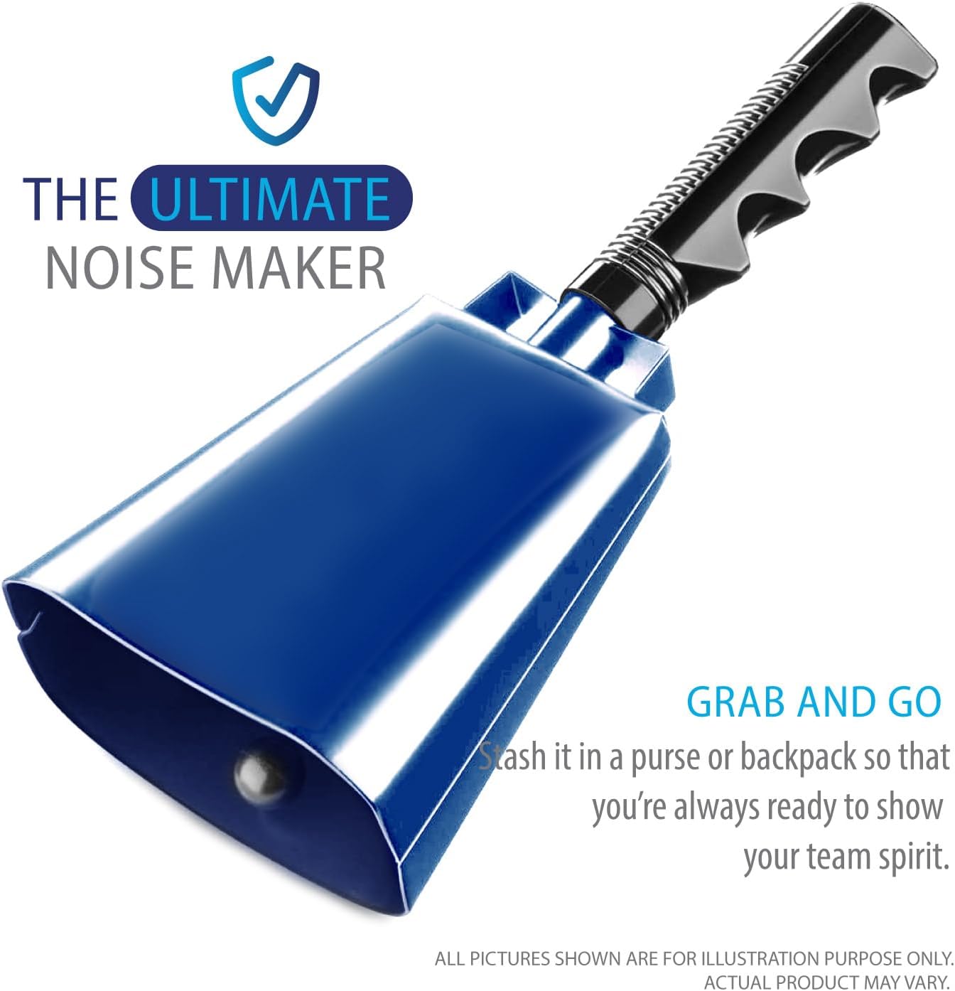 • ๐Ÿ”” Loud & Durable Steel Cowbells : Made from high-quality alloy steel, these 10-inch cow bells produce a clear, powerful sound perfect for cheering at sports games, football, and soccer events.