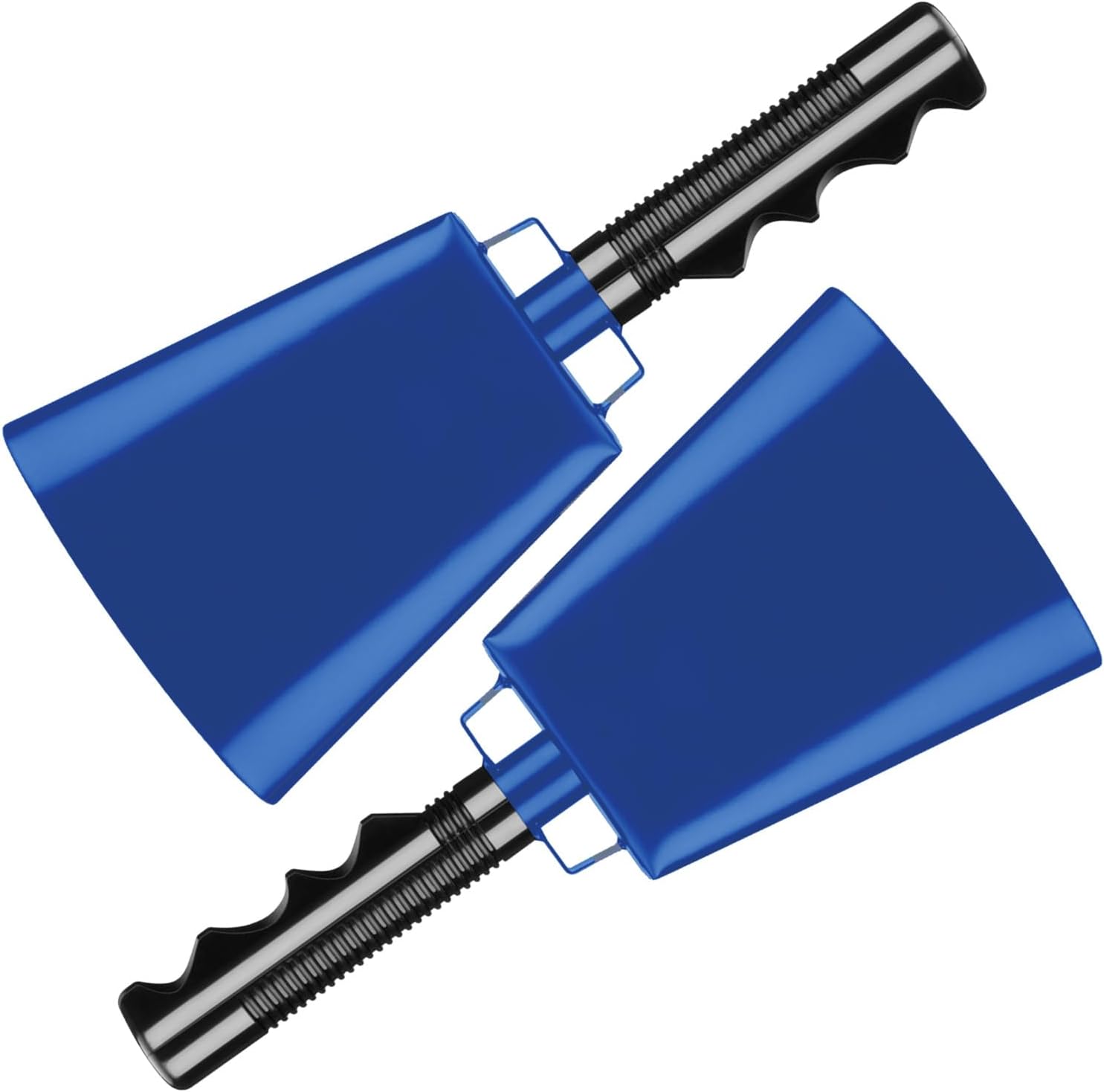 Deke Home - 2 Pack 10 Inch Steel Cowbells with Handle, Loud Noise Makers for Football, Sports, Parties, Competitions, School Spirit & Safety, Large Hand Bell for Cheering & Percussion Instrument