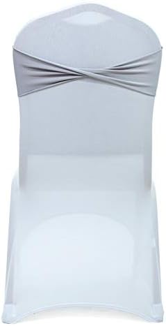 VDS Pack of 125 PCS | Light Silver | Spandex Chair Sashes Bows Without Buckle | Stretch Elastic Banquet Universal Folding Chair Band Tie with for Wedding Party Conference Celebration Event Decoration