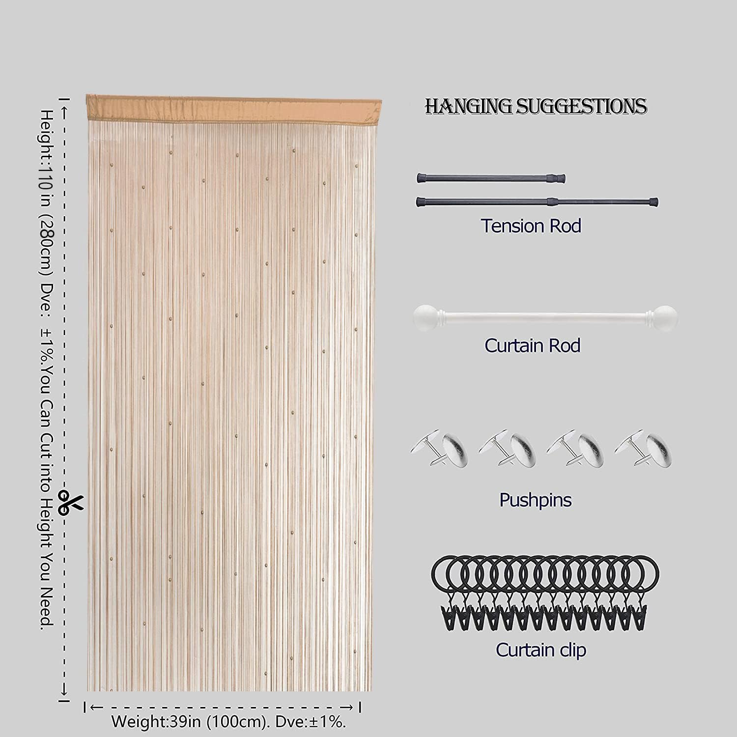 • The door curtains hang beautifully and let light in,meanwhile keep privacy,look pretty and delicate.If you need the strings to be dense,we suggest buy 2 or more.