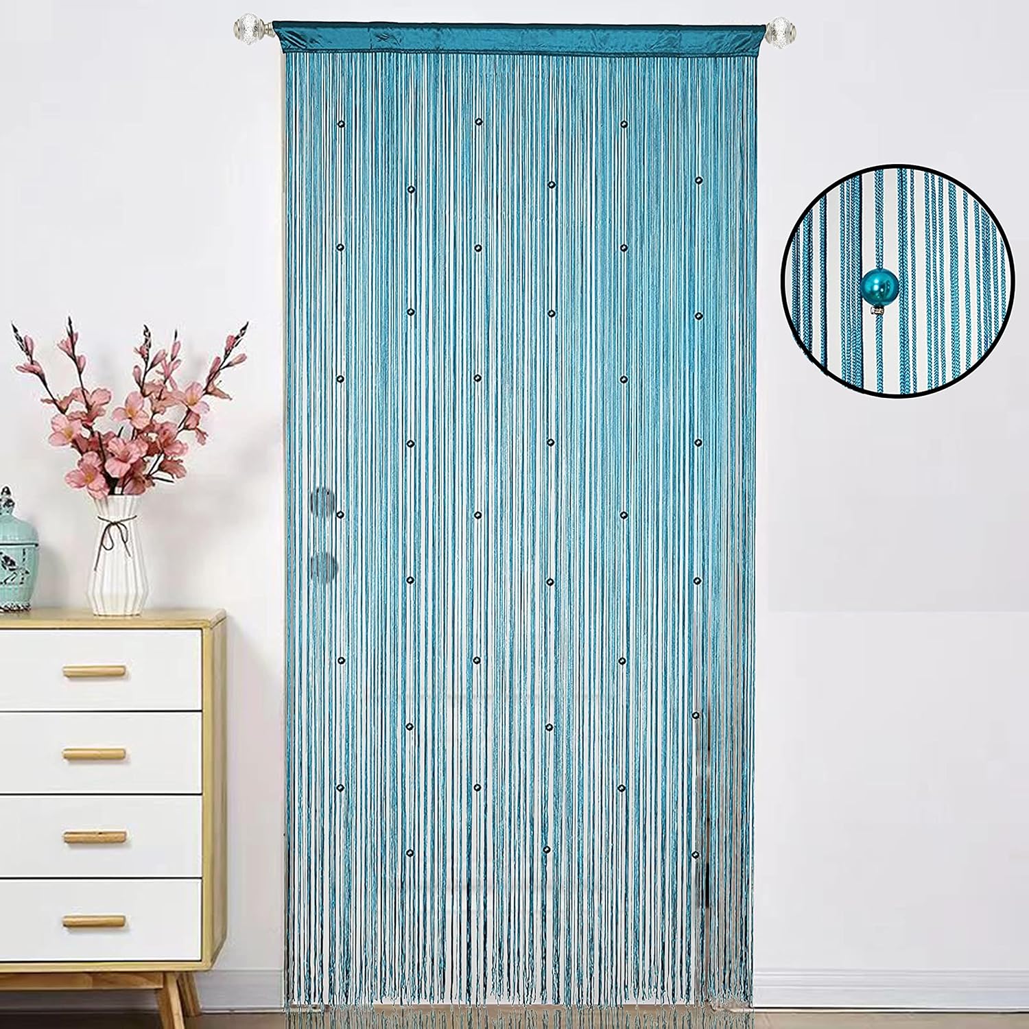 Beaded Doorway Curtain Door Beads Dense String Curtains Fringe Hippie Perfect for Wall Hanging Decor Room Divider Privacy Doors Window Closet Doorways Decorations (100x280cm,Teal Blue)