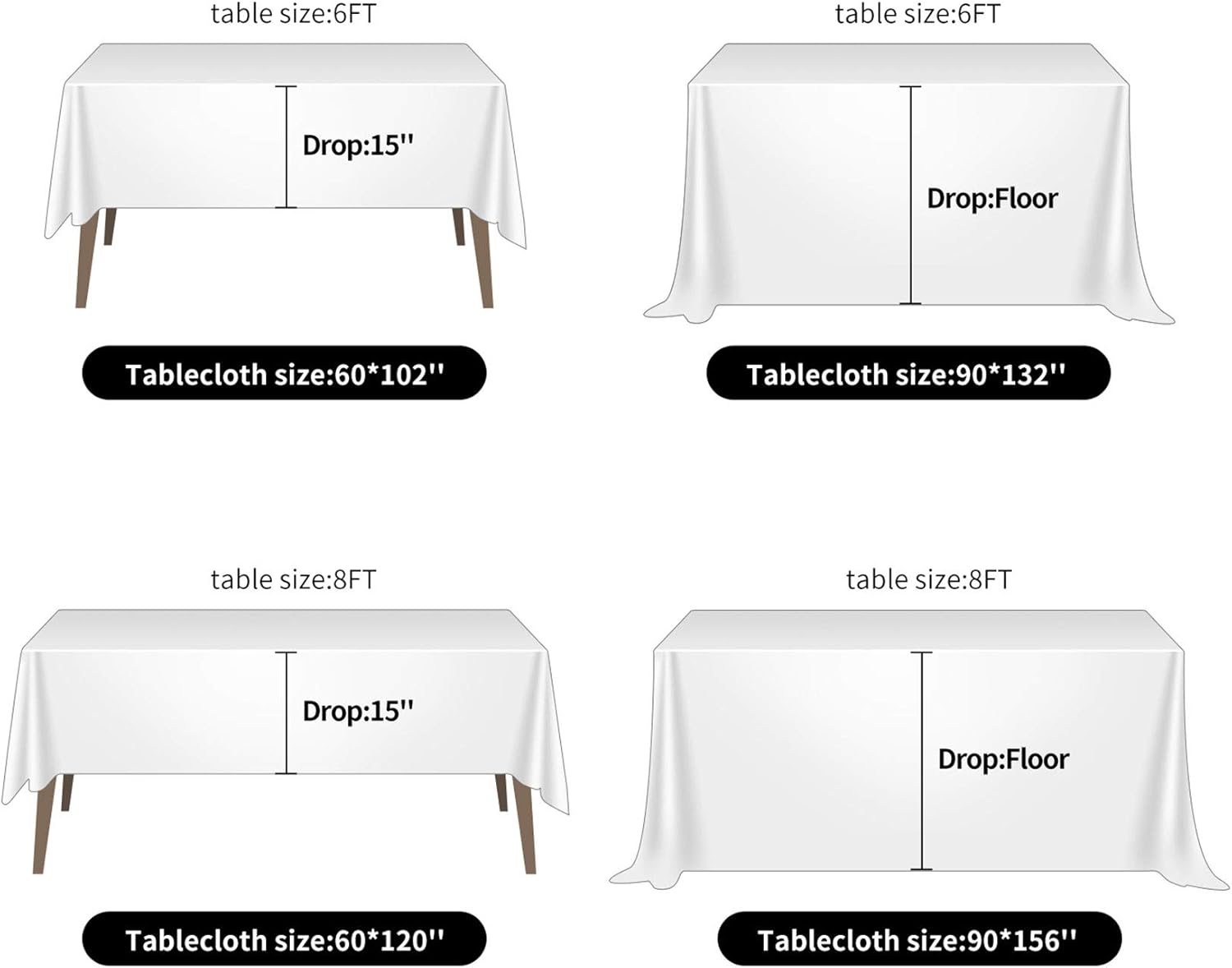 • 2 PACK SET, MORE ECONOMICAL: Each pack include 2 pcs of rectangular tablecloth, measuring 90”x132” each. Durable for repeat use, cheaper than renting.We also have 6 pack set and 12 pack set,which will save more.