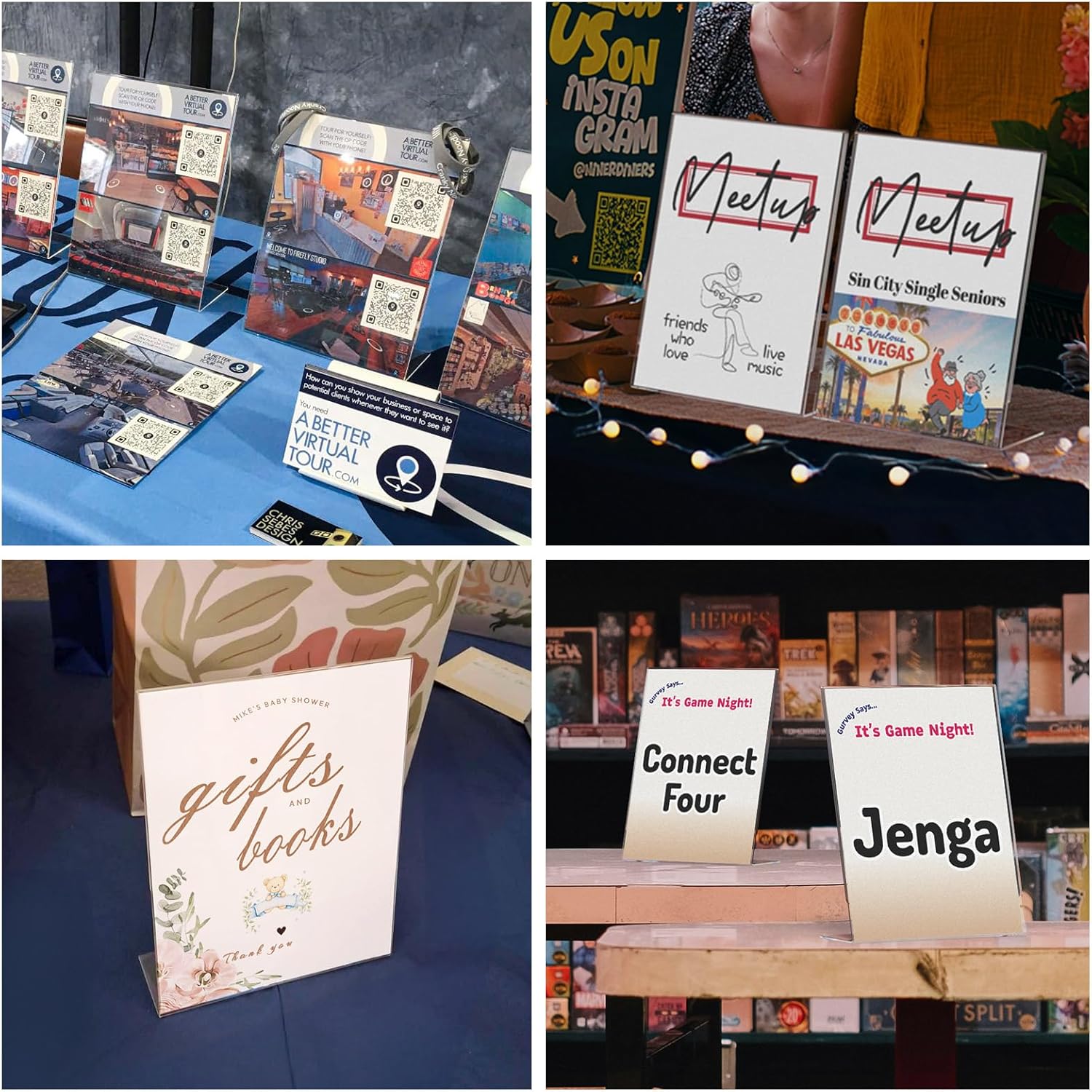 • MULTIPURPOSE USE - NIUBEE clear plastic holders are perfect for displaying signs flyers, paper, images, brochures, ads in the office, hotel, library, school, church, restaurant, bar, conference, exhibition, fair, trade show, wedding events etc.