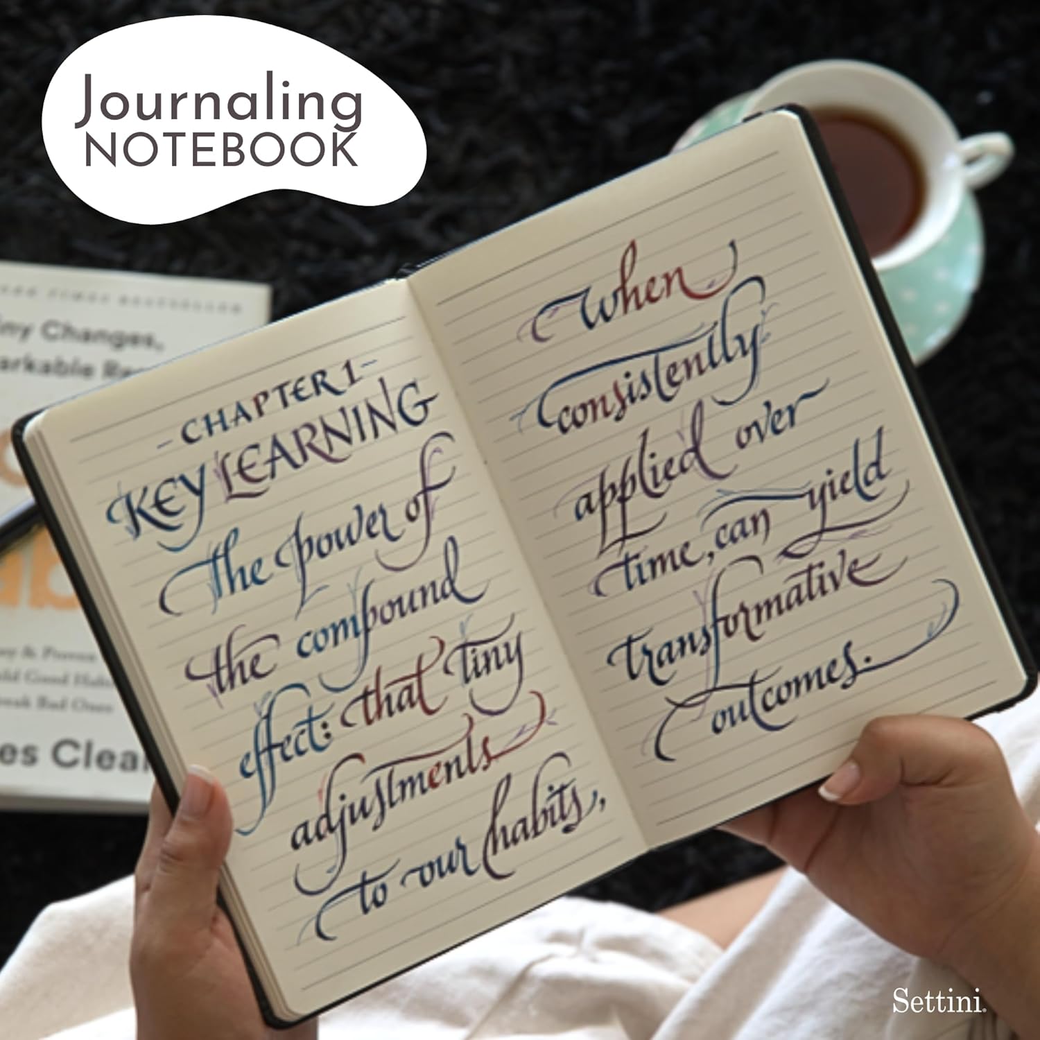 • Smooth Writing Experience: Features 80 GSM QuillEase paper with 7mm line spacing, offering a luxurious, bleed-free surface - ideal as a writing journal, journaling notebook, or travel journal notebook.