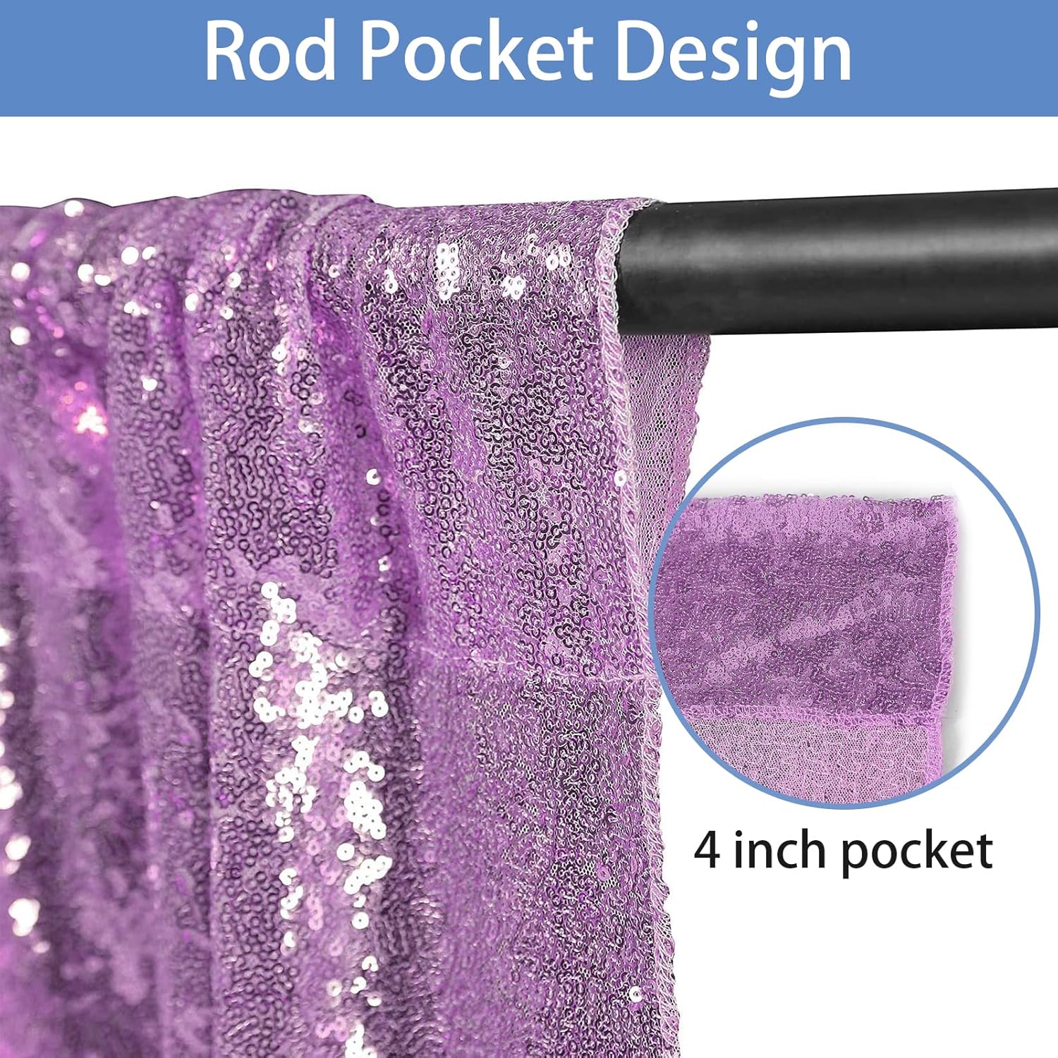 Hahuho Lavender Sequin Backdrop Curtain, 2PCS 2FTx8FT Glitter Backdrop Curtain for Parties, Christmas, Wedding, Party Decoration(2 Panels, 2FT x 8FT, Lavender