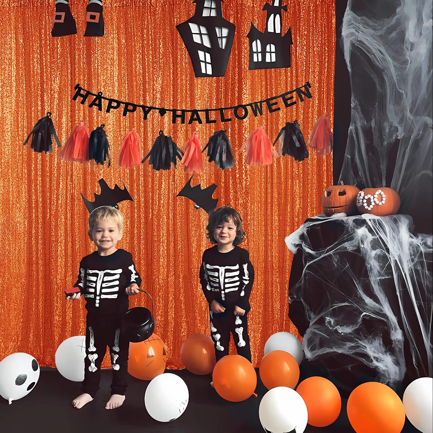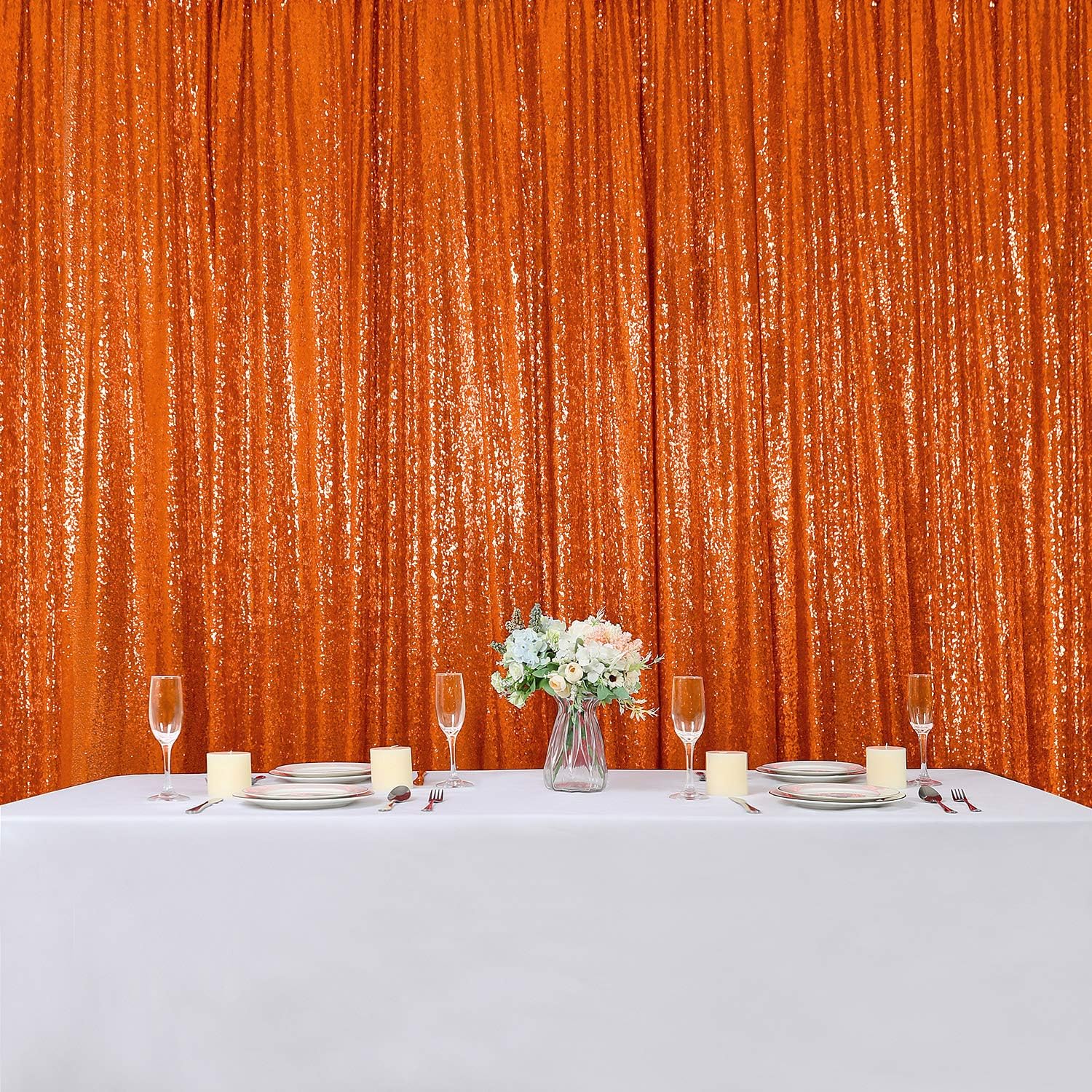 Hahuho Orange Sequin Backdrop Curtain, 2PCS 2FTx8FT Glitter Backdrop Curtain for Parties, Christmas, Wedding, Party Decoration(2 Panels, 2FT x 8FT, Orange