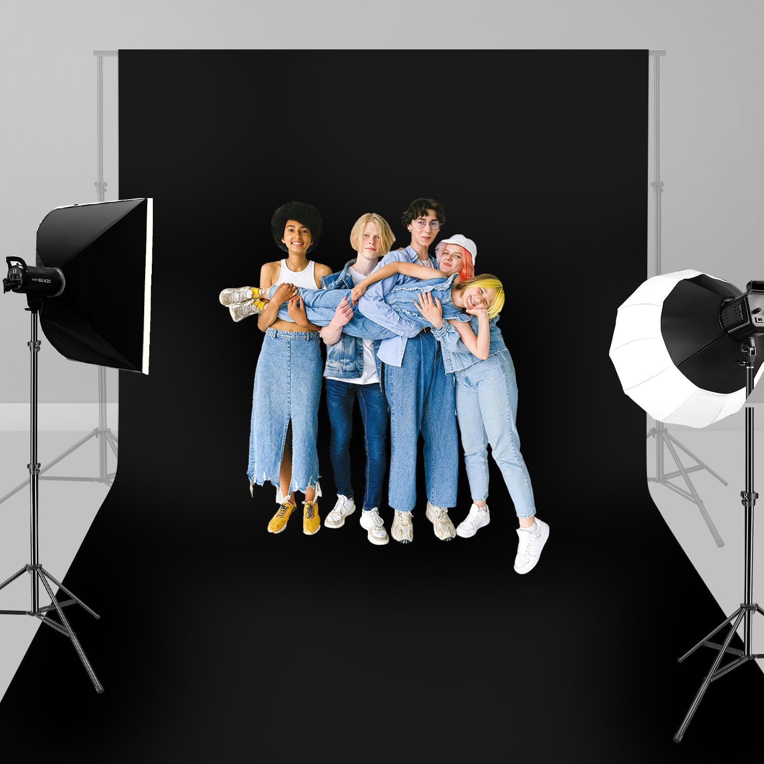 • Application: The large black backdrop background is suitable for shooting large scenes such as many people taking photos together, complex scenes in professional studios that require a large number of photographic props, virtual background and etc.