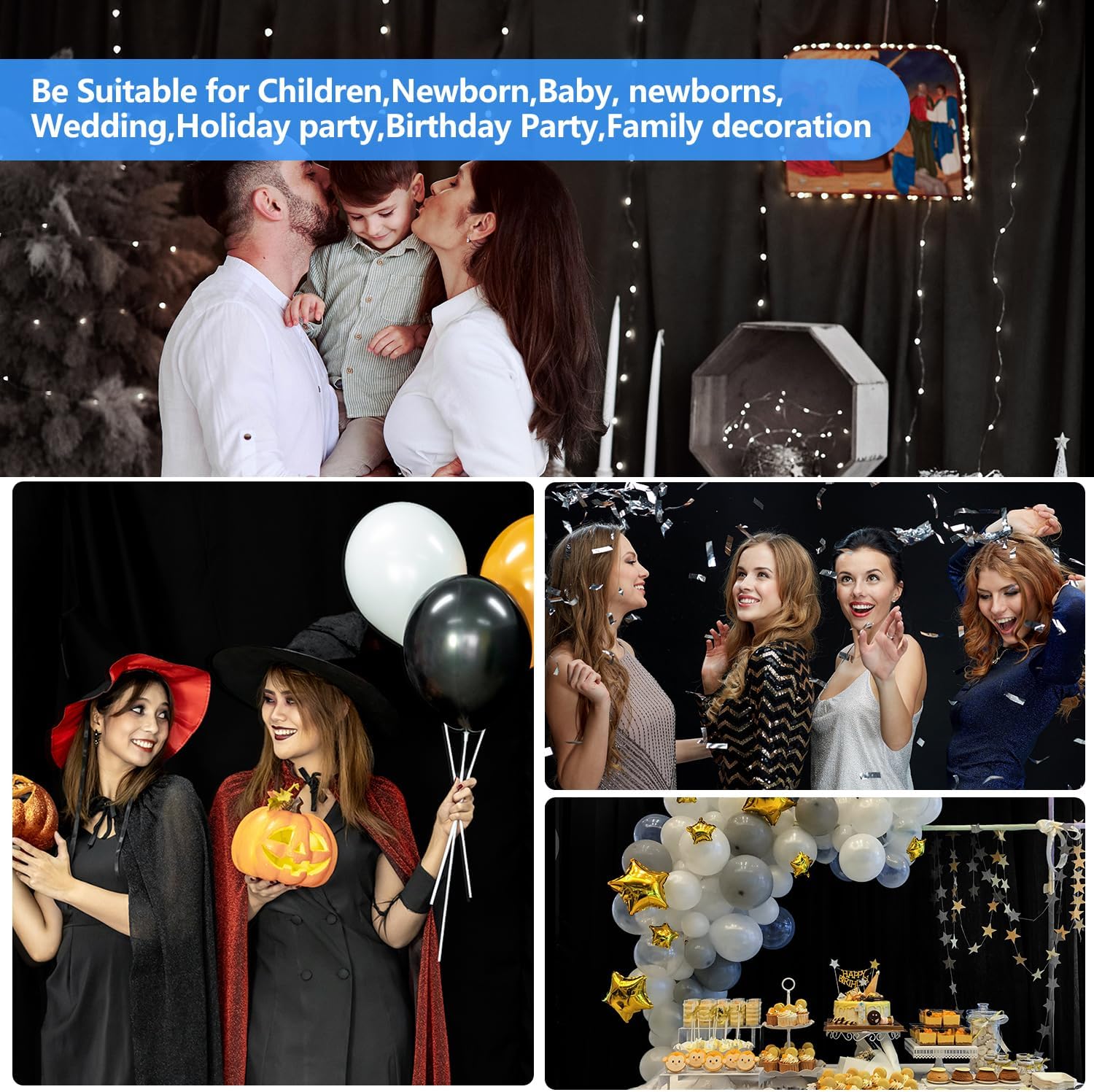 • Widely Used: Black backdrop cloth is also perfect for weddings, receptions, parties, bridal and baby showers, birthdays, candy buffets, ceremony, arch stages photography, photo booths, video broadcast, interview and more.