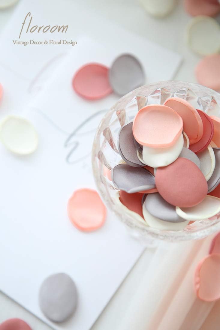 • ❤️Color Details: Salmon Pink/ Light Salmon Pink/ Silver Grey/ Ivory. This color combo is designed by Floroom Studio. We also offer solid color petal packs for free combination, enabling you to craft specific accessories matching your wedding decoration.