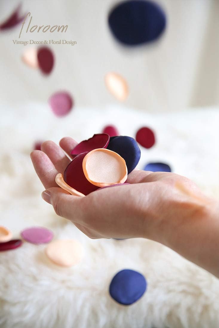 • ❤️Color Details: Burgundy/ Maroon/ Navy Blue/ Champagne Gold. This color combo is designed by Floroom Studio. We also offer solid color petal packs for free combination, enabling you to craft specific accessories matching your wedding decoration.