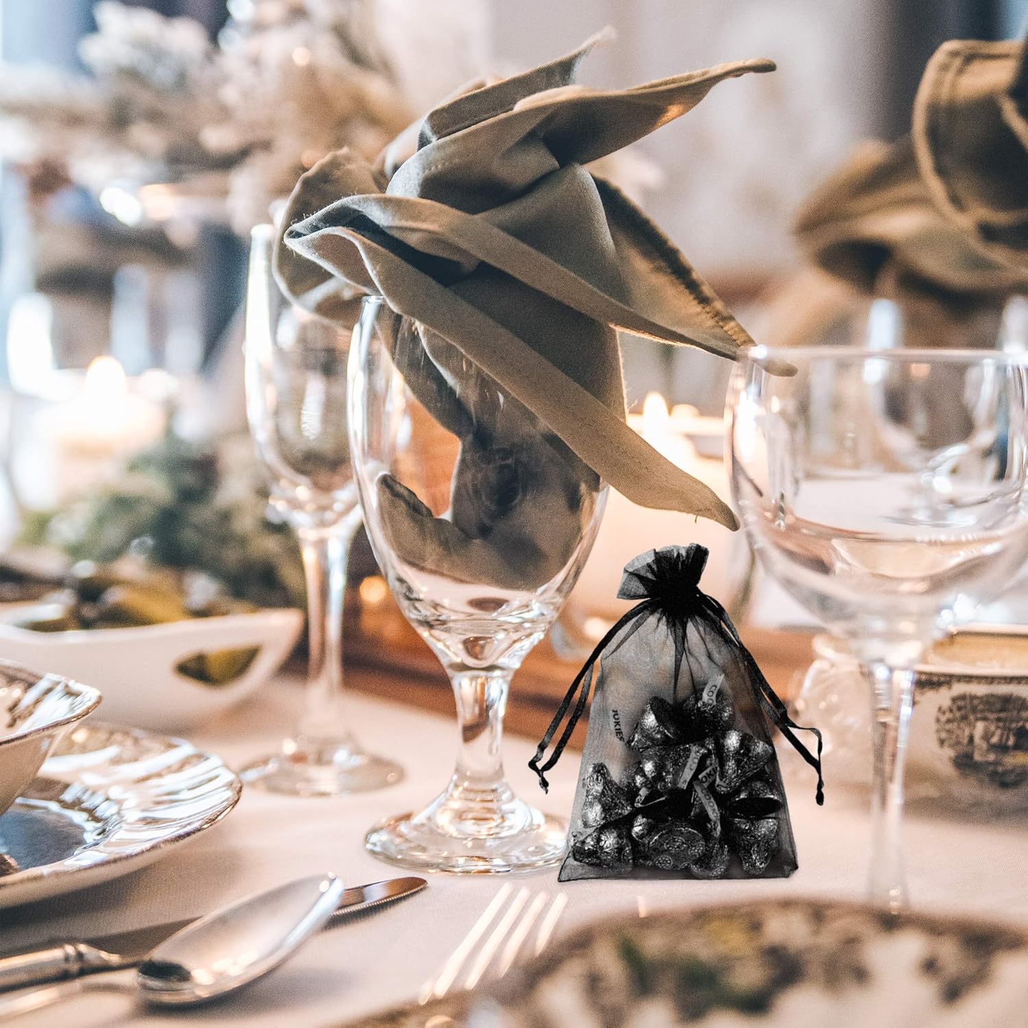 Super Z Outlet 100 Pack 5x7 Inch Mini Sheer Drawstring Organza Transparent Bags Jewelry Sack Pouches for Wedding, Party Decorations, Arts & Crafts Gifts (Black)