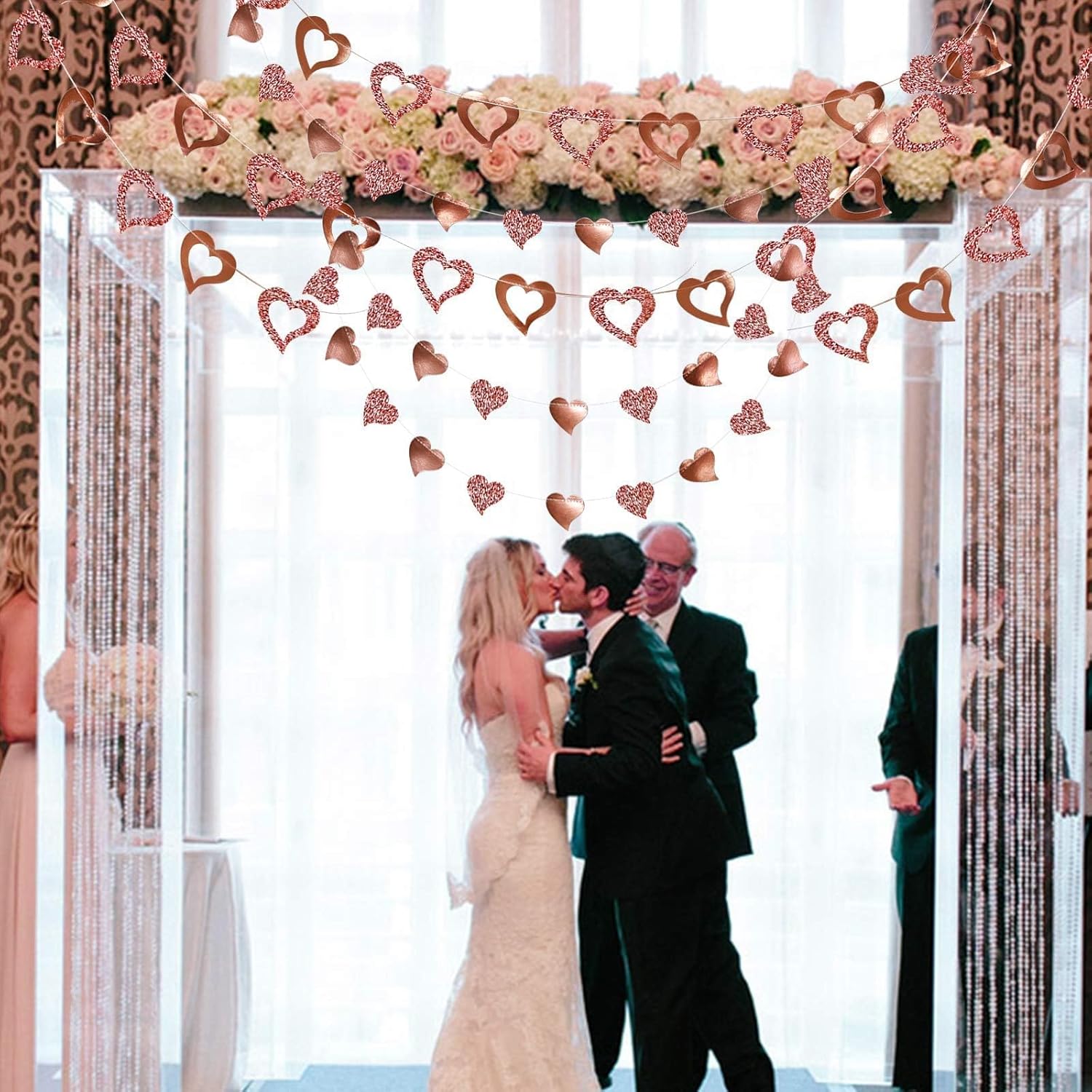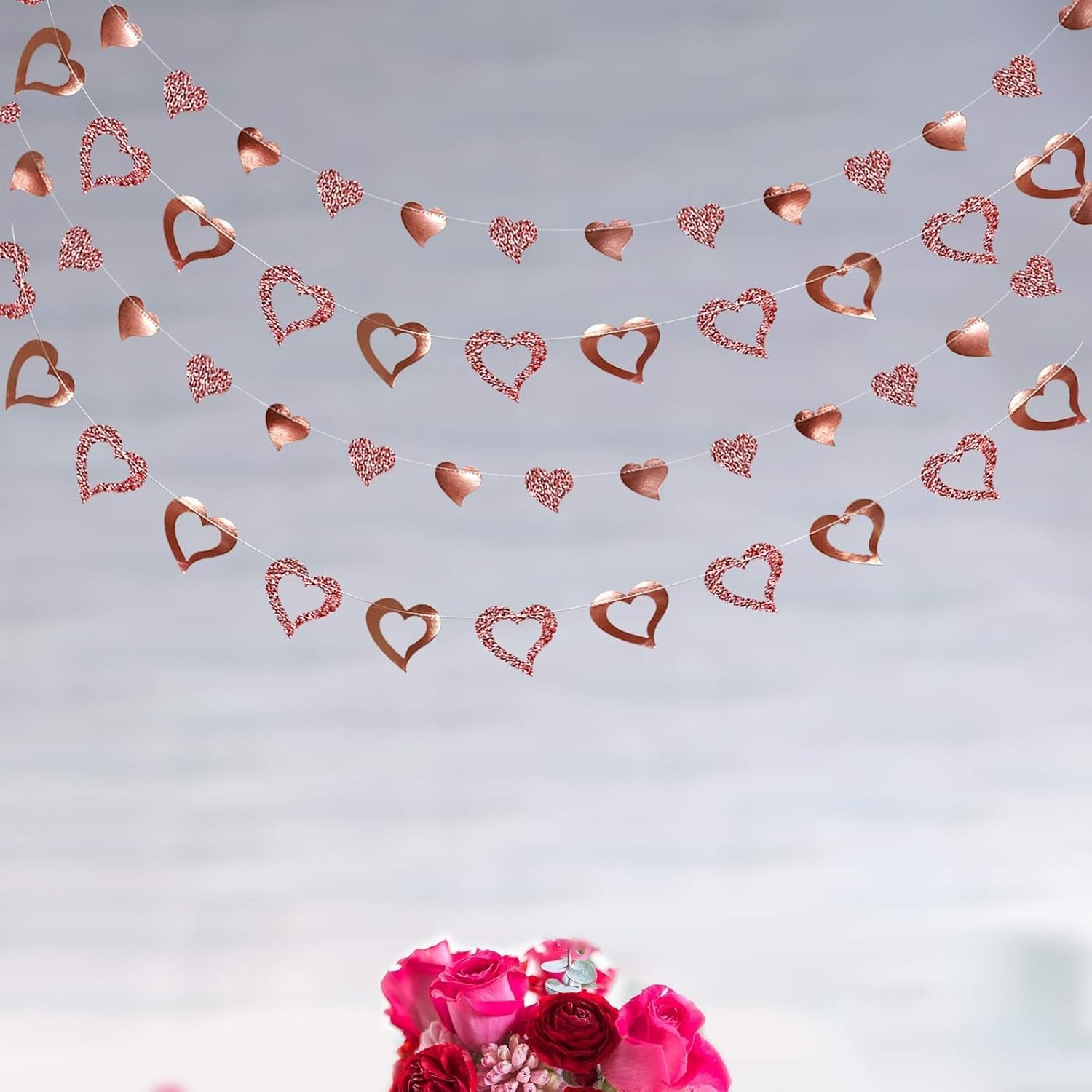 Cheerland Rose Gold Heart Garland Glitter Valentine Day Mothers Day Wedding Engagement Anniversary Bridal Shower Baby Shower Bachelorette Party Decorations Backdrop Banner Hanging Decor