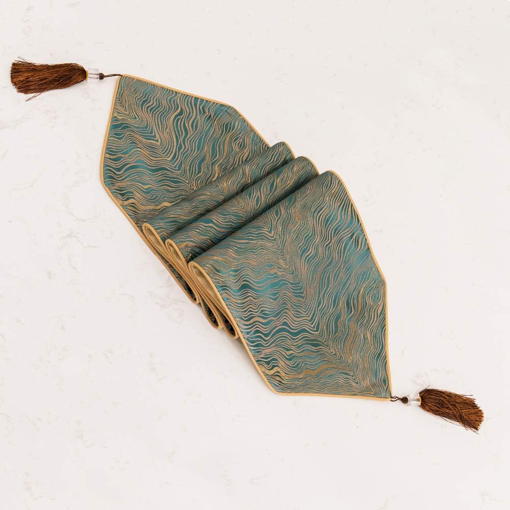 Avigers 12 x 72 Inch Decorative Luxury Abstract Striped Green Teal Table Runners with Tassels for Home Living Room Bedroom Art Decor Wedding